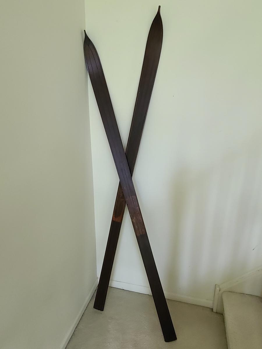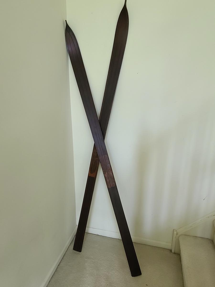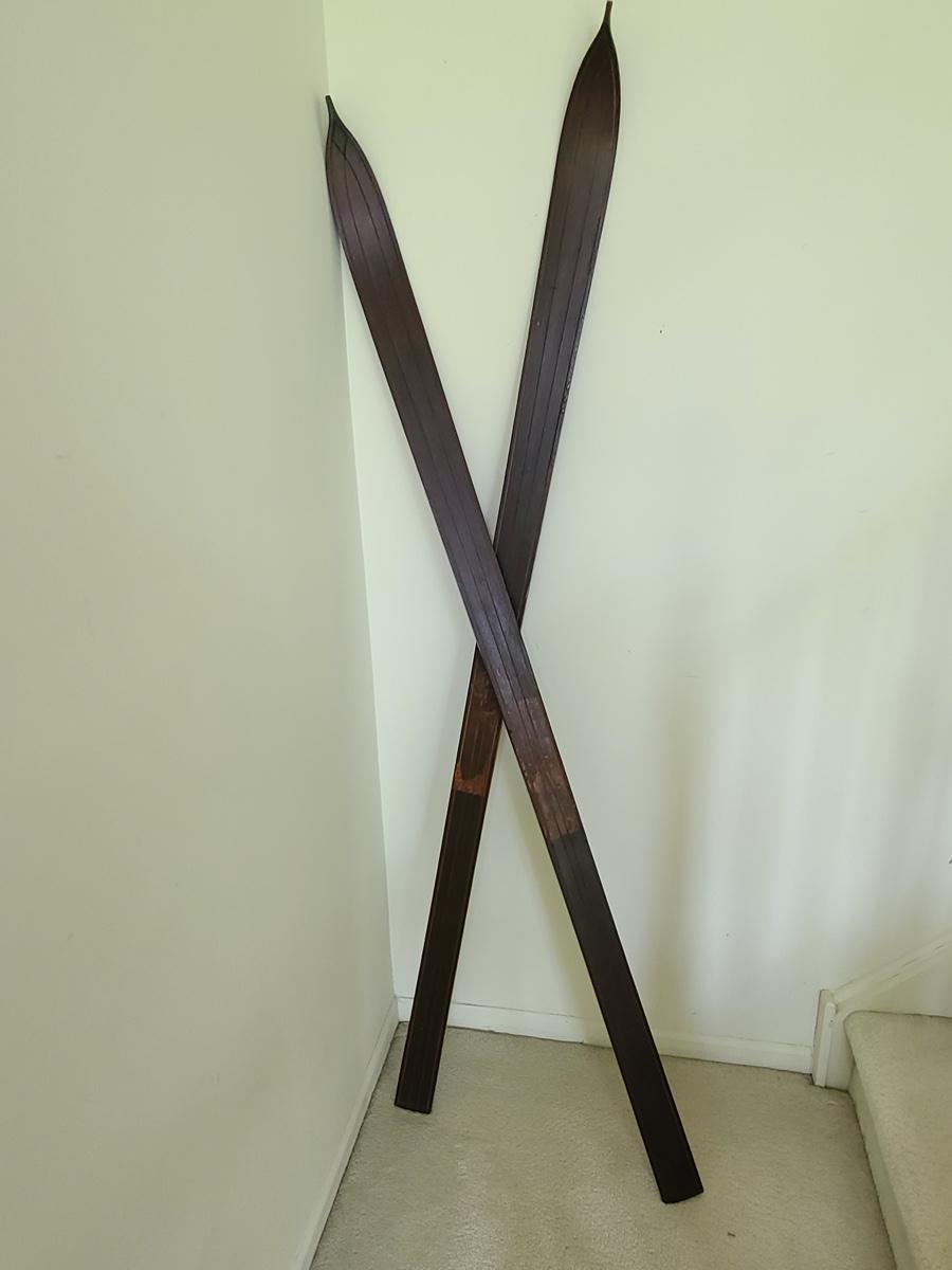Antique Wood skis used as home decor. These measure around 3 inches wide and over 5 feet tall. Please see all pictures for content of the lot, condition of the lot, and measurements if taken. Pictures are the best representation of the items listed and items are untested unless indicated in description. Thank you for looking and have fun bidding![
