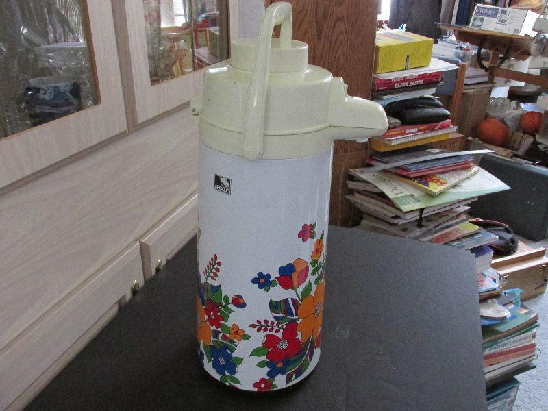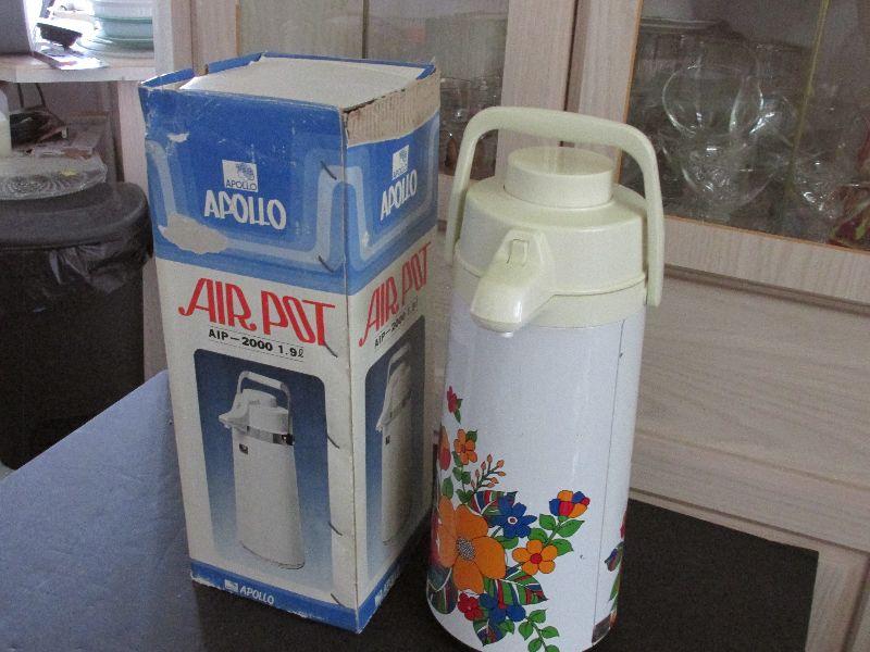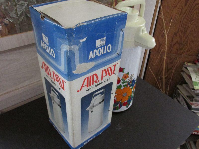 Vintage Apollo Air Pot AIP 2000 1.9 Liter Thermos. Floral Design. The box is beat up and the thermos has some wear but not in terrible condition considering its age. Tested and works.
