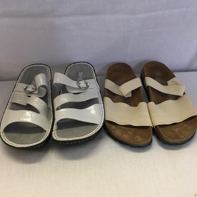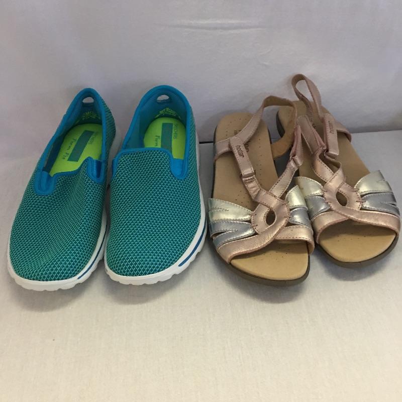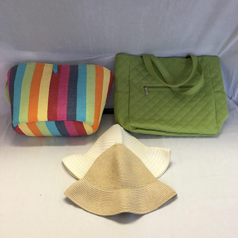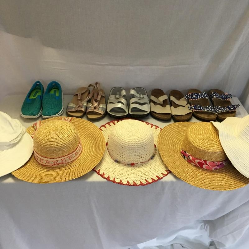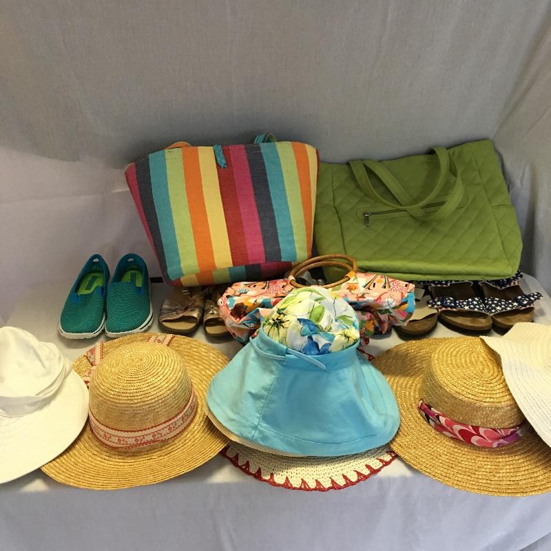 Beach ware includes two pair of Birki’s, Neimen Marcus bags, straw hats, canvas bags and more. Shoes are sizes 7.5 - 8.5