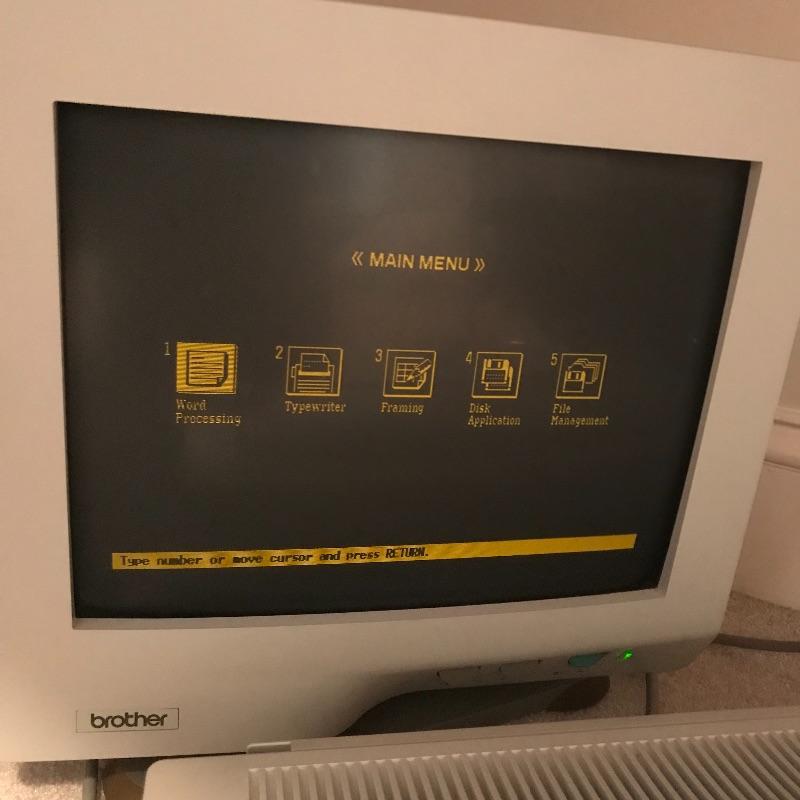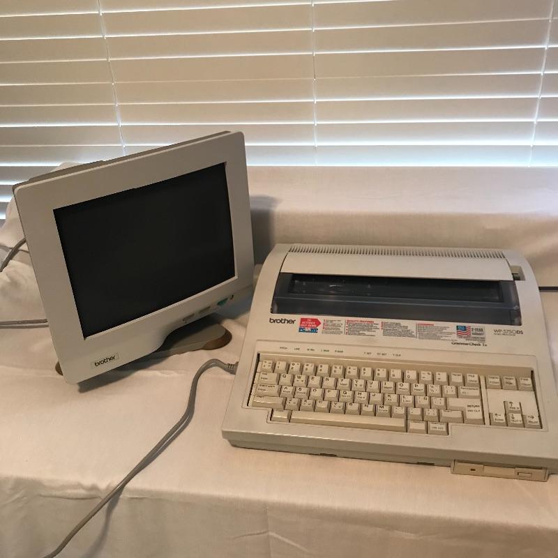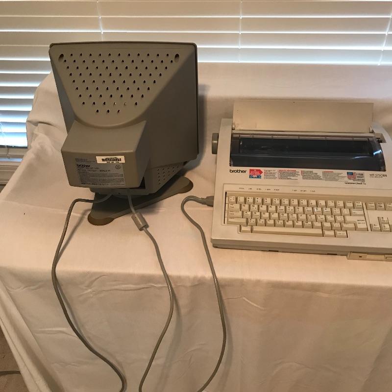 Working Brother Word Processor WP-575ODS with Brother monitor CT-1400 and additional ink cartridge. Both monitor and word processor turn on when plugged in. The processor has a floppy disc drive and appears to be in great condition. See photos. No shipping.