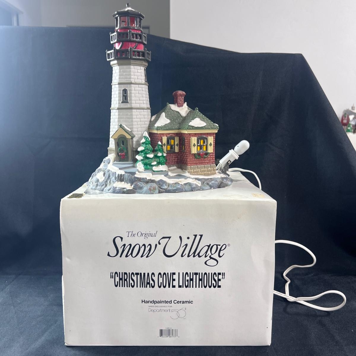 Department 56 Snow Village Christmas Cove Lighthouse. This is duel-lit and I haven’t tested either of them yet. The top has a bulb broken off in it, but I’m going to test it and report back - after I replace the bulb. C’mon. I’m an auctioneer, not a scientist - I’m smart! Please see photos for details and condition. ::: Shipping is available on this lot. If you require shipping you must let us know at the close of the auction. We will coordinate with you after the item has been won. Shipping fees will include insurance up to or exceeding the value of all items being mailed. If you have any questions regarding this lot please contact the auctioneer either via this website, by direct email or by phone. PICK UP TIMES and other important information can be found in the TERMS and DESCRIPTION of the auction. Please take a look for pertinent information. Thanks! Any condition statement is given as a courtesy to a client, is an opinion, and should not be treated as a statement of fact. Reference to condition written, oral or within a condition report shall not be regarded as a full account of condition and may not include all defects, alterations, or restorations. Absence of a condition report does not imply a lot is flawless or lacking imperfections or damage. Katherine’s Auction & Appraisal Service shall have no responsibility for any error or omission. Returns shall not be accepted on the basis of condition.