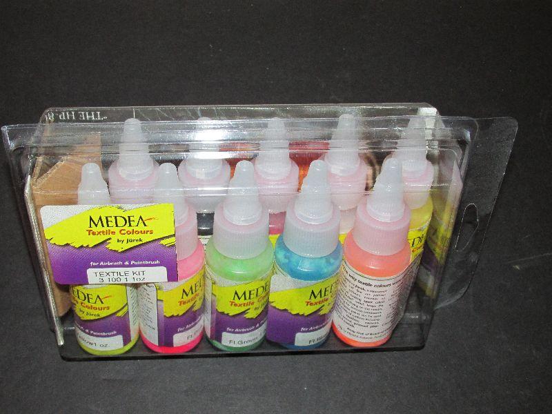 Brand new set of Medea airbrush textile paint. There are (10) 1 oz. containers in package.