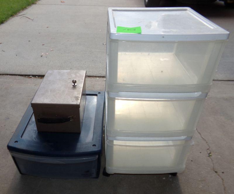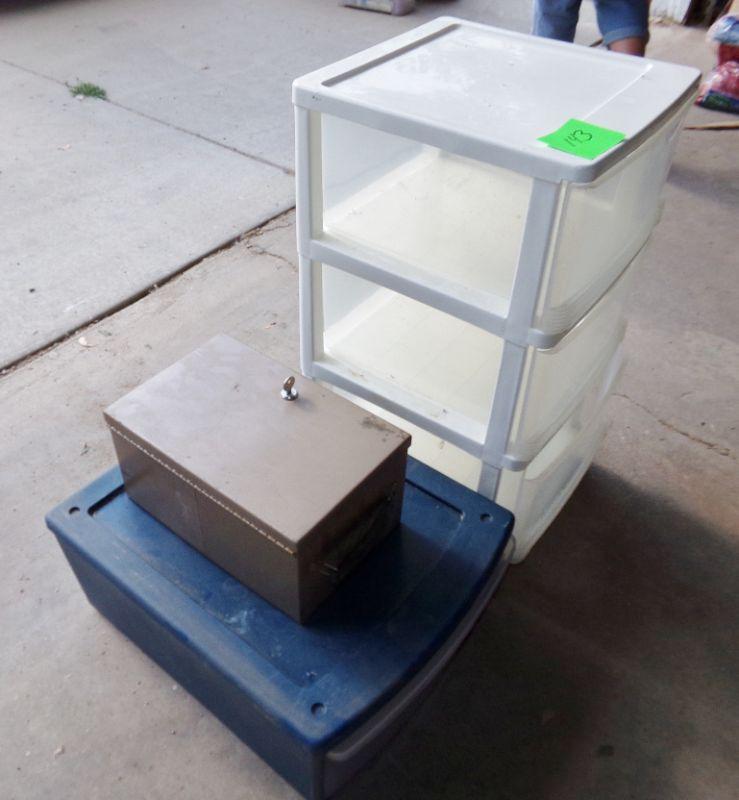 LOCKBOX WITH KEY, 3 DRAWER ORGANIZER, TOTE W/LID