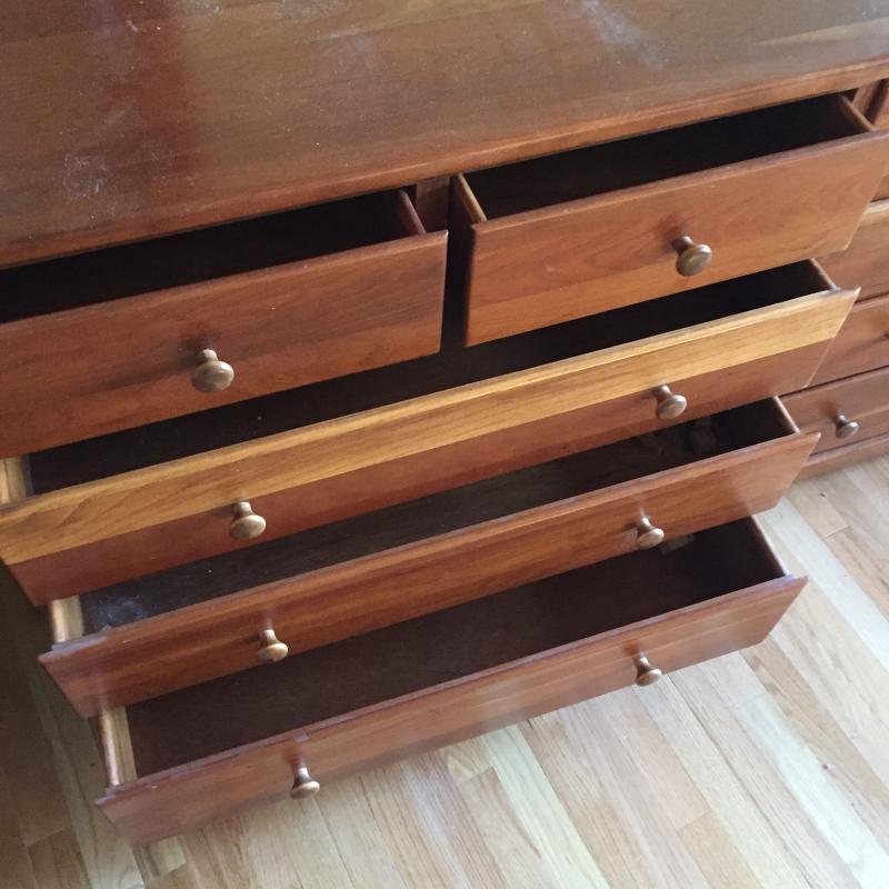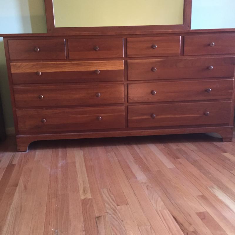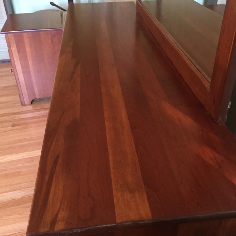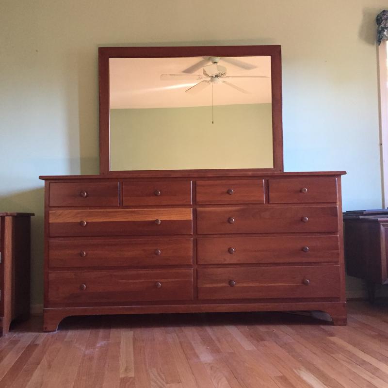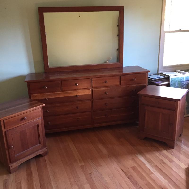 Classic Dresser,Pair of Night Stands and mirror. Would look great in an room has dovetail Drawers and is very solid. Dresser Measures 18” x 68.75” x 34.25”. Night Stands each Measure 21” x 18” x 26”. Mirror Measures 35.25” x 48.25”.