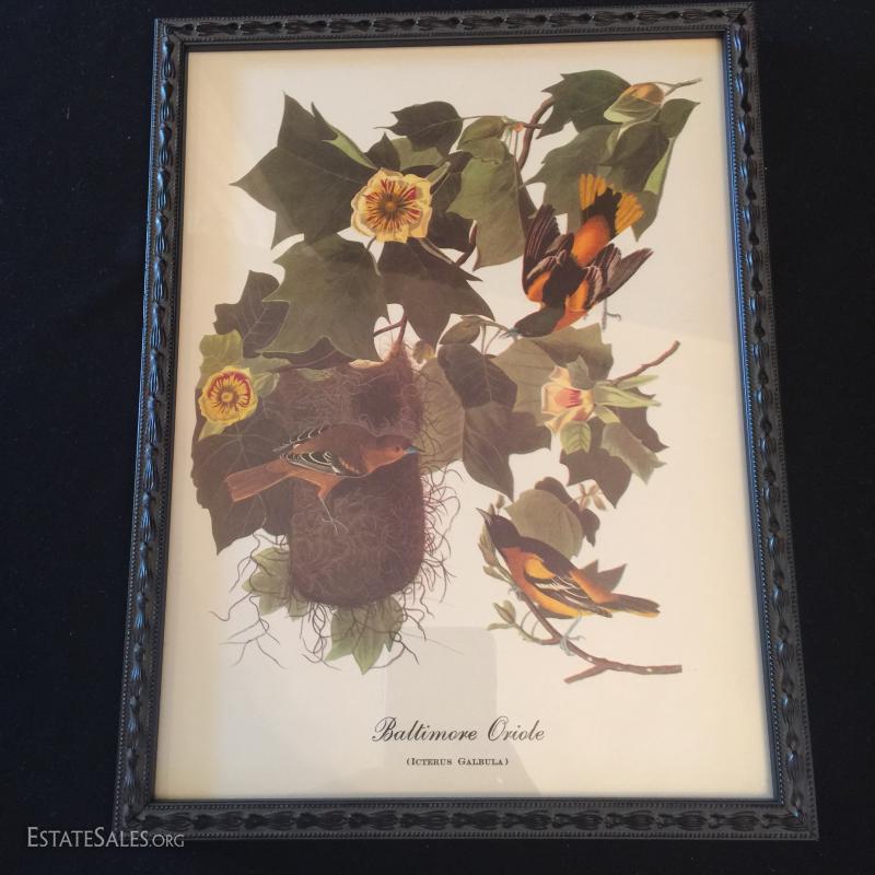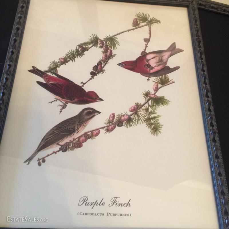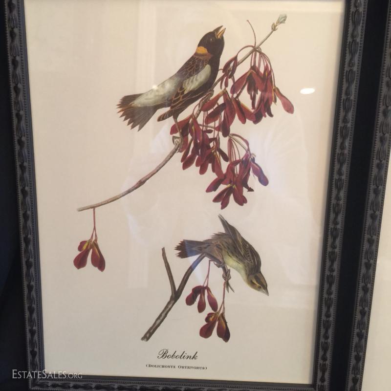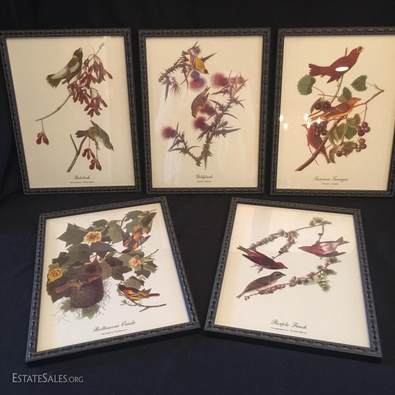 Five, professionally framed bird prints. Lot available for pick up only in Hendersonville, NC.