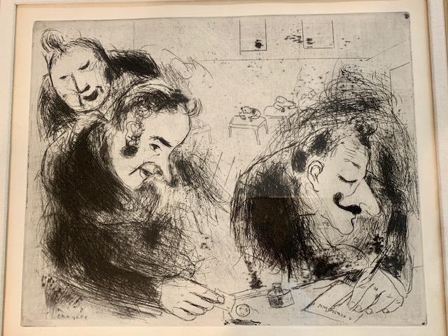 Print by Marc Chagall. Framed under Glass, 3 Men.