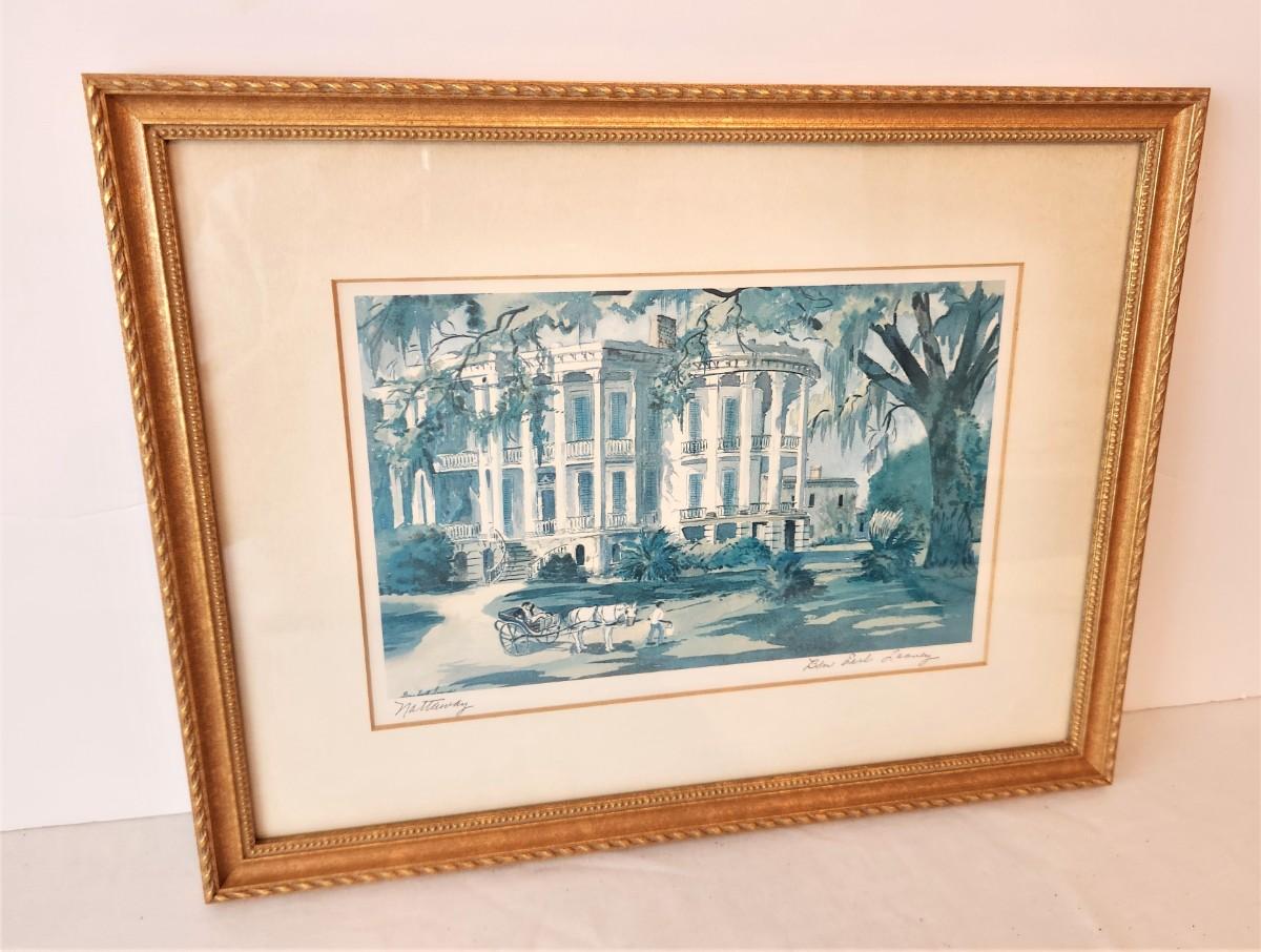 Pencil Signed by Artist Ben Earl Loney, 12" x 16" nicely framed print of Nottoway Plantation. Good condition.