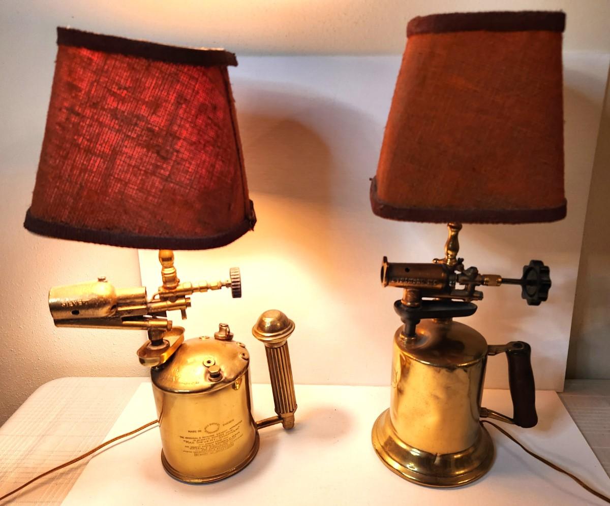 Lot #143 Lot of 2 Lamps made from Vintage Brass Blow Torches