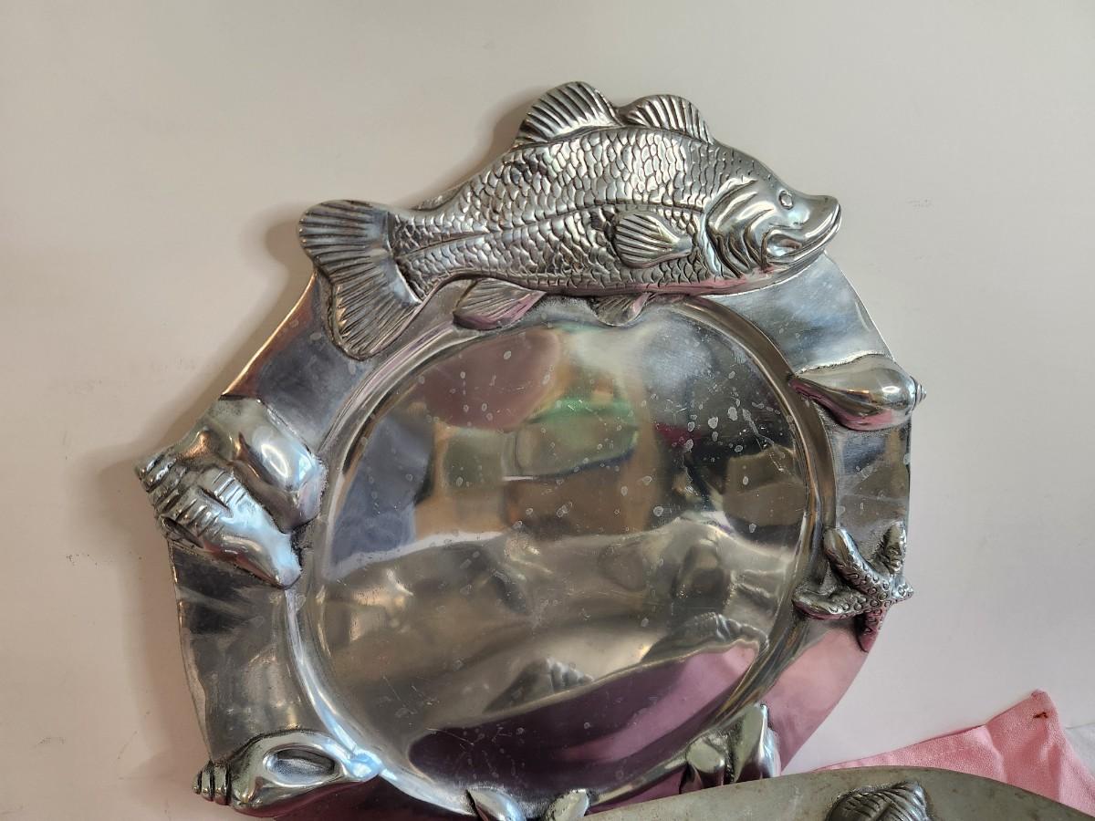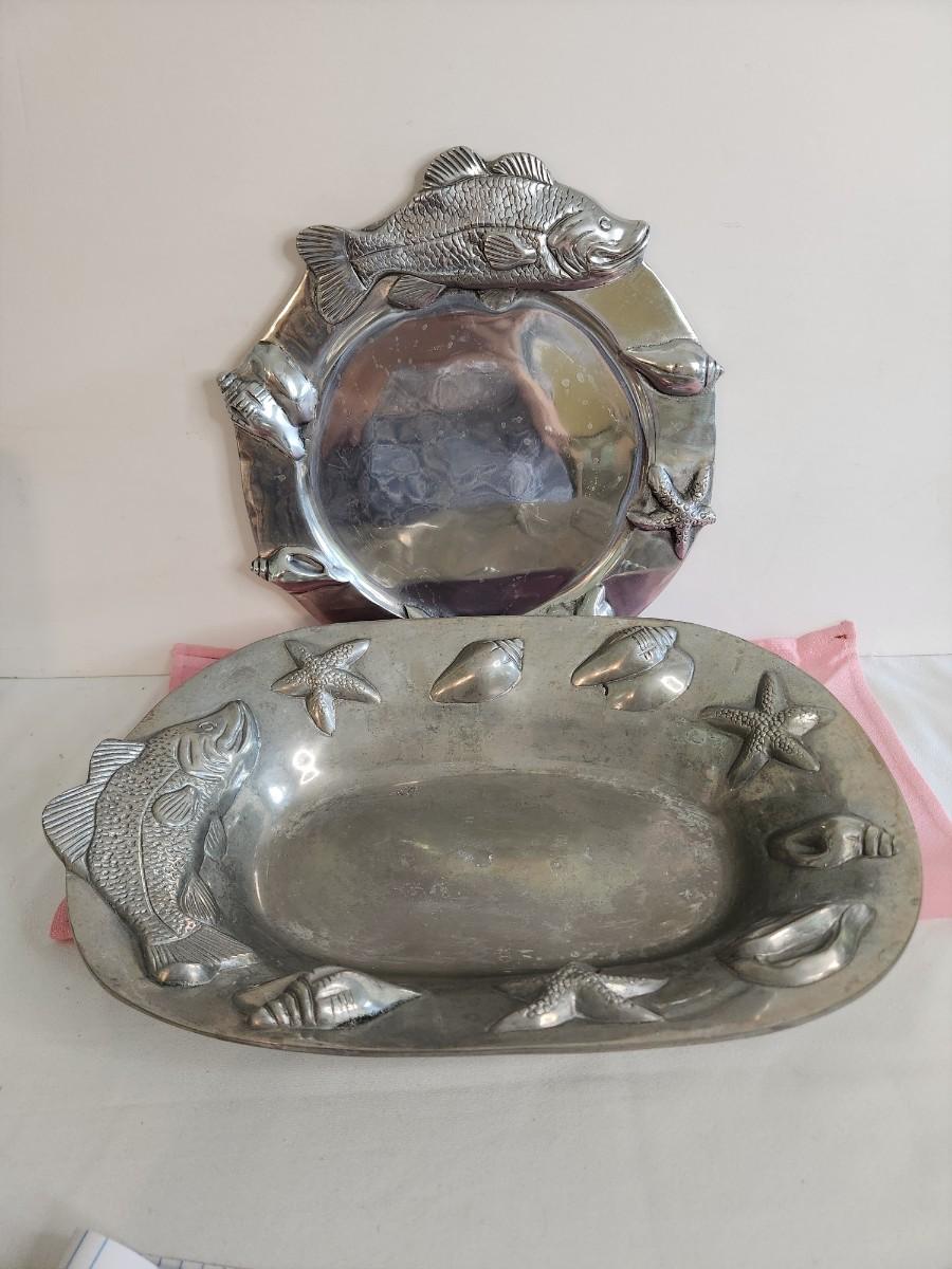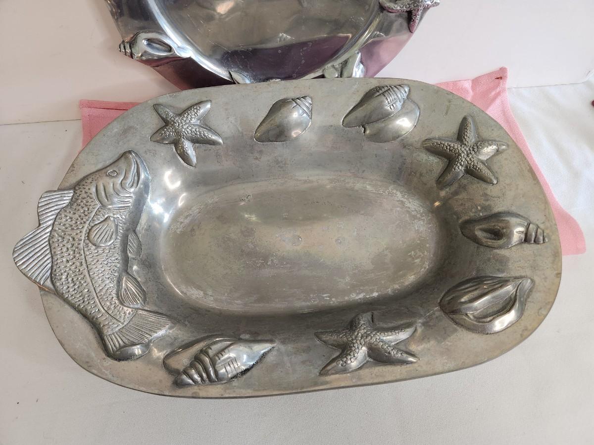 Lot #143 Lot of 2 "Pewter finish" serving dishes - seafood theme