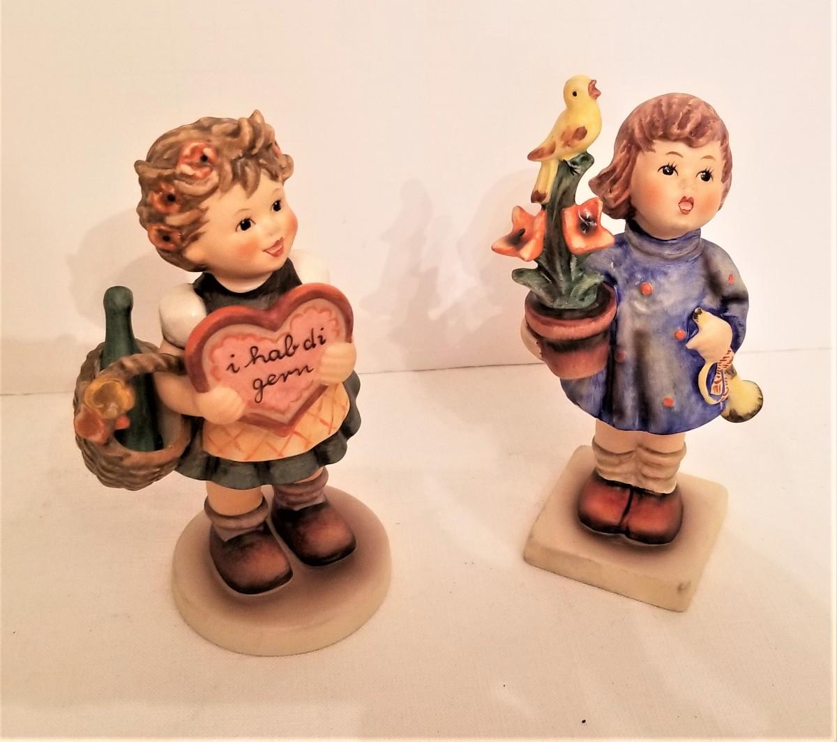 Two charming bisque Hummel figures - no boxes - the one on the left is the Goebel Collector Club piece (only available to members ) - 1972 - the other is entitled "Congratulations." Both in good condition, each 5.5" tall.