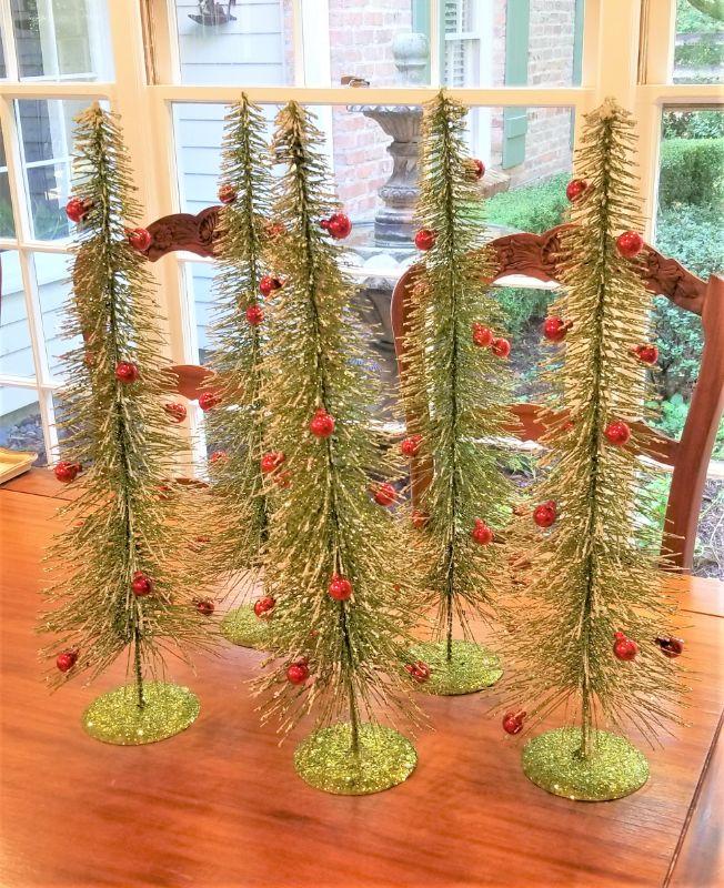 You get the whole forest! Set of Five trees with metal bottoms - will look great on your mantel. Each is 24" tall.