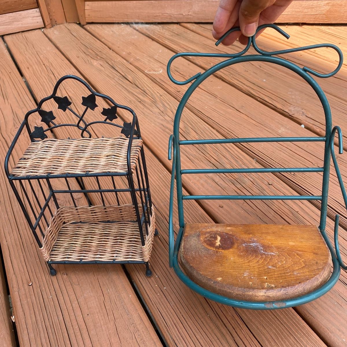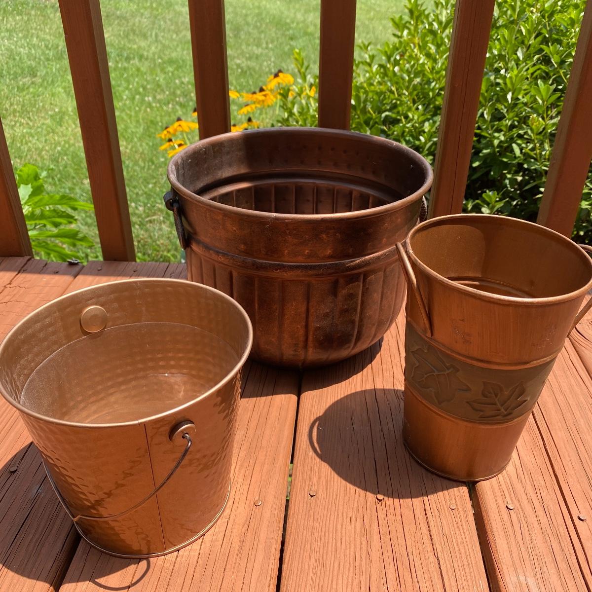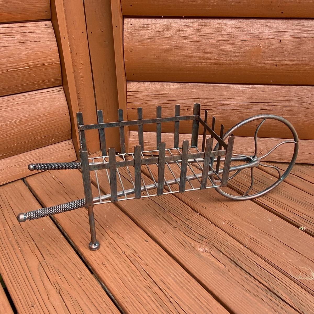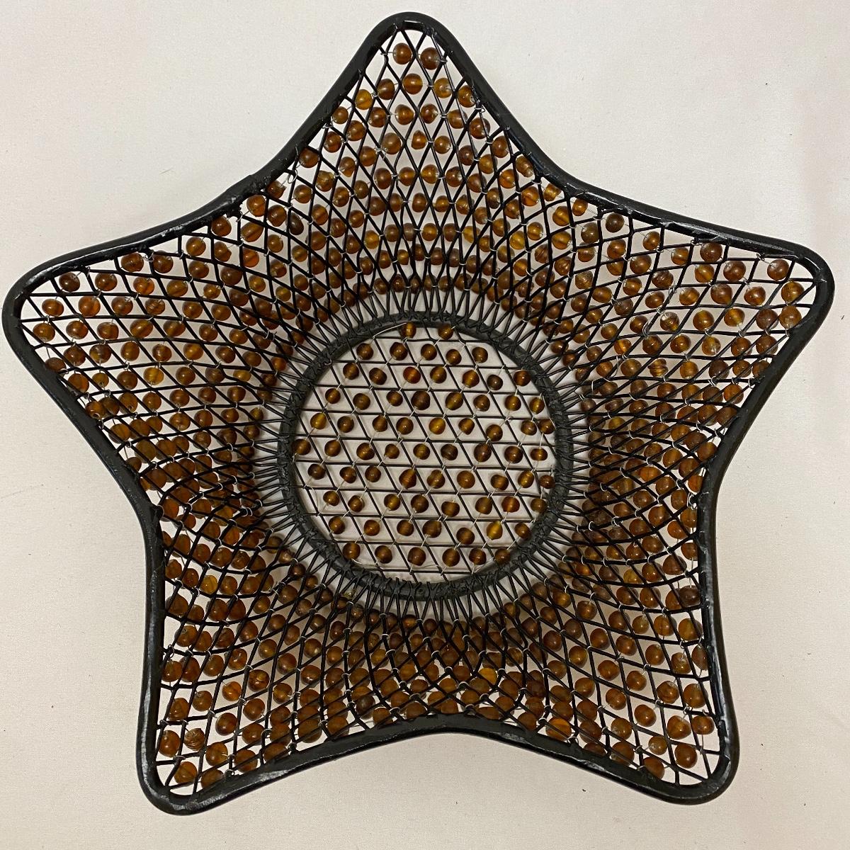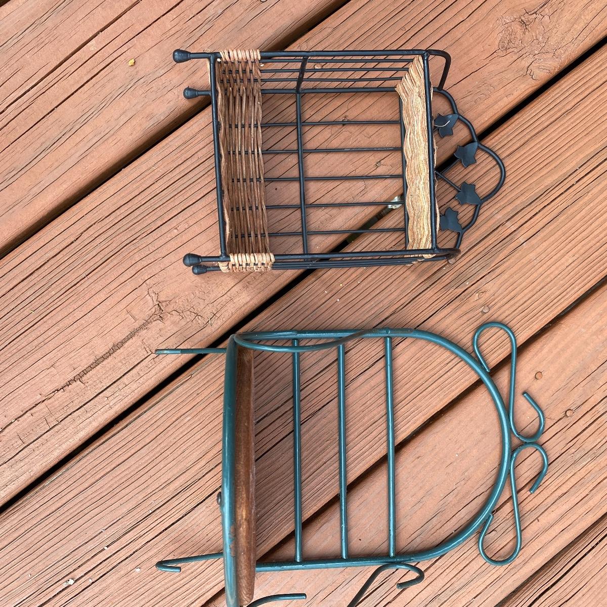 Depart from the norm and get a hold of these wire or tin containers. This lot includes a cute wheelbarrow metal basket and three metal wire baskets that hold potpourri (apple, pumpkin and owl items). These appear to open from the base to replace potpourri with fresh potpourri. There are copper and silver colored tins and black and green wire baskets. Don’t miss the beaded star metal basket! It measures 10.5” across from point to point. See pix for more measurements. Great variety to use around your home and garden. Local pick up only.