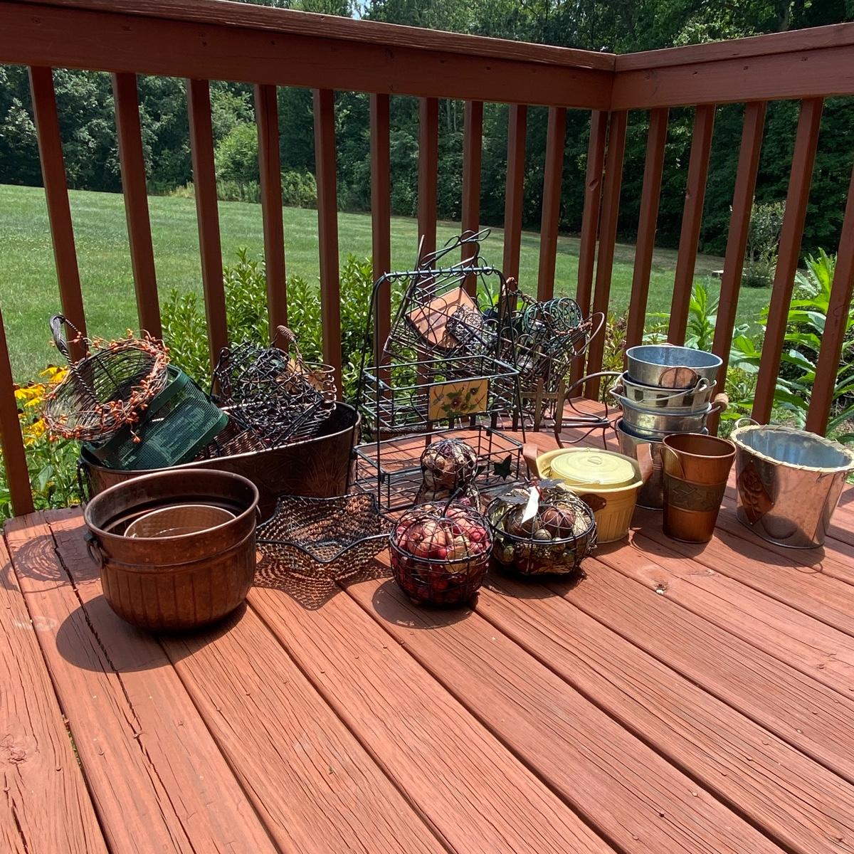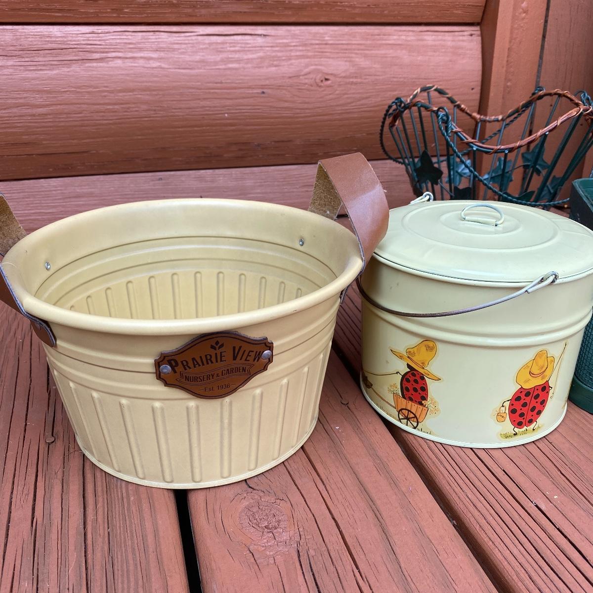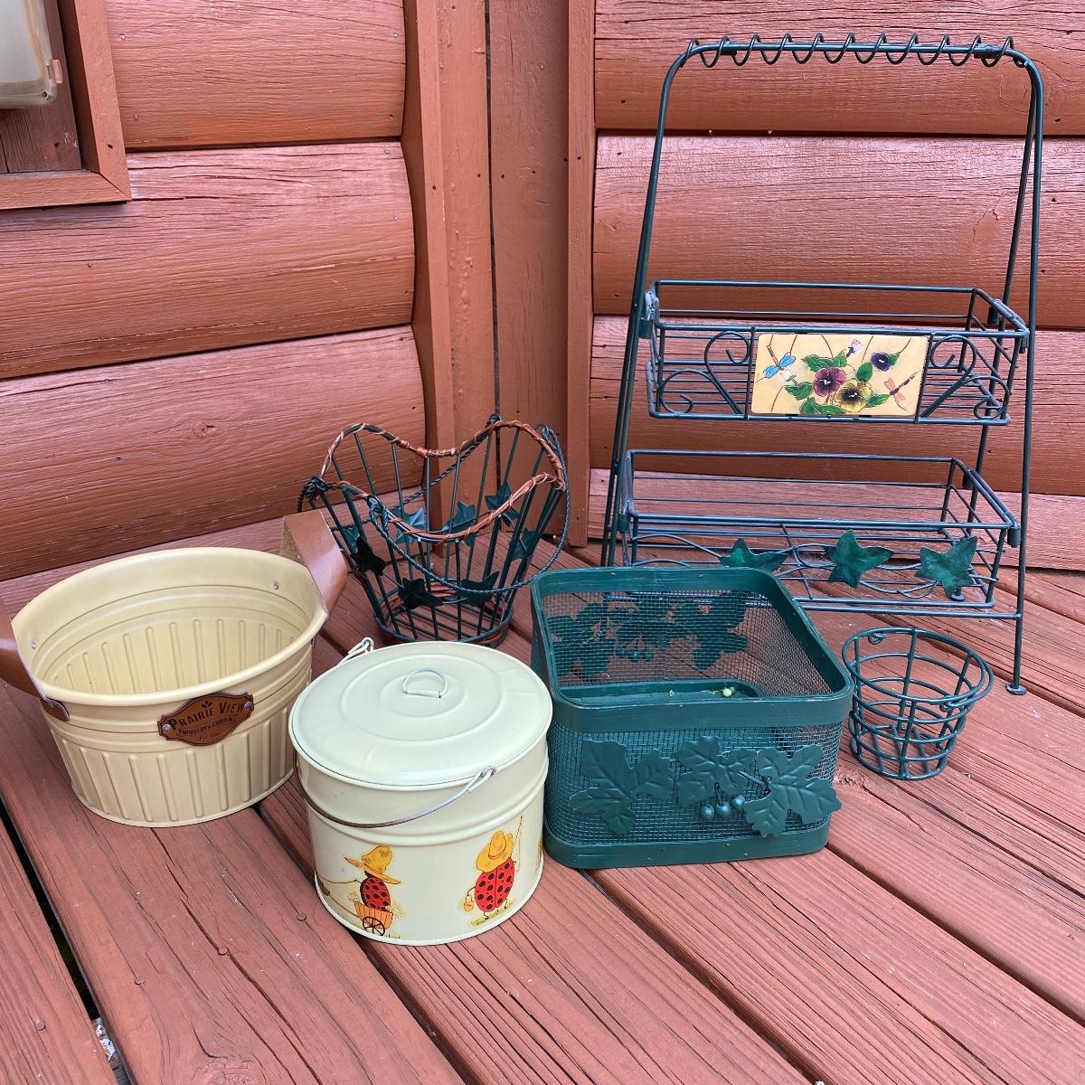 Lot 143 - Lots of Wire and Tin Baskets, Buckets & Containers & More