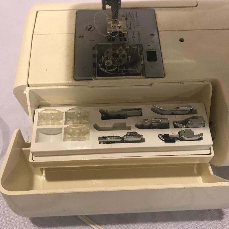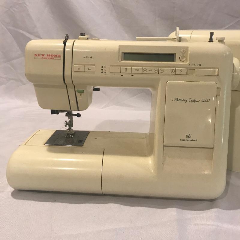 Computerized Memory Craft 4000 here just for you! This piece has been designed especially for quilting (check out lot 170 for books and fabric)! This machine has its pedal and electric cord and turns on when plugged in. We were unable to figure out why the needle won’t move when the pedal is pressed, one bobbin spins, but alas, we are downsizing managers, not sewing machine repair people. See photos and set an appointment for preview! Shipping available.