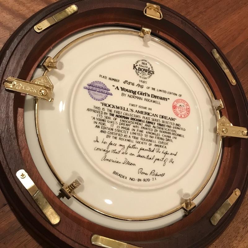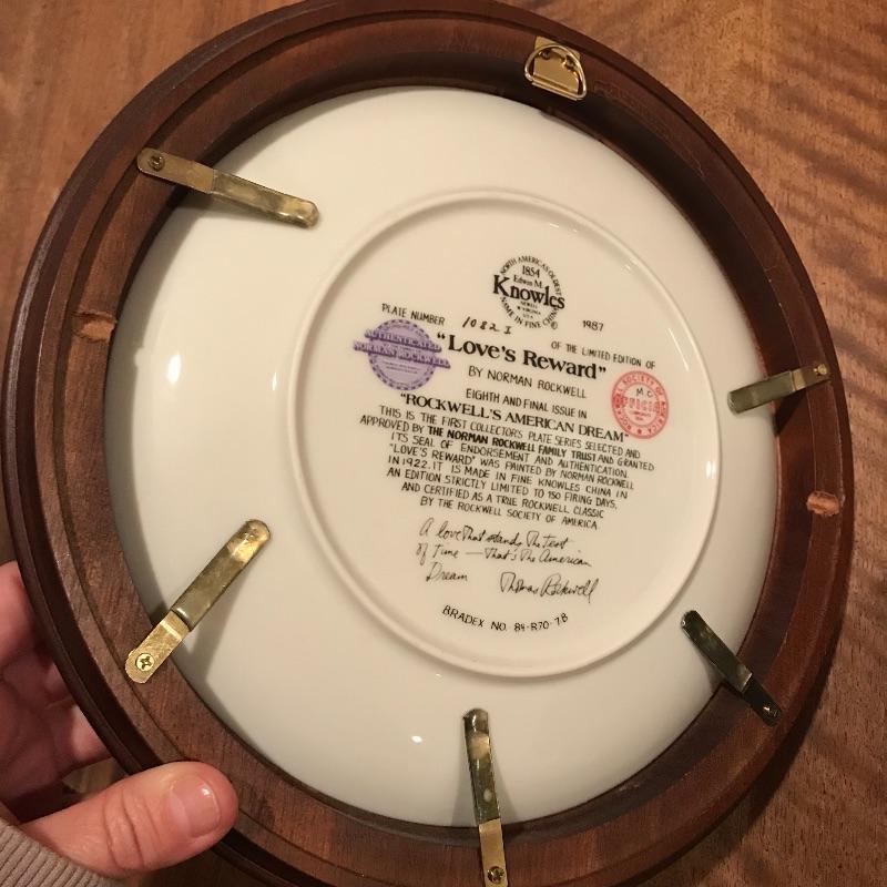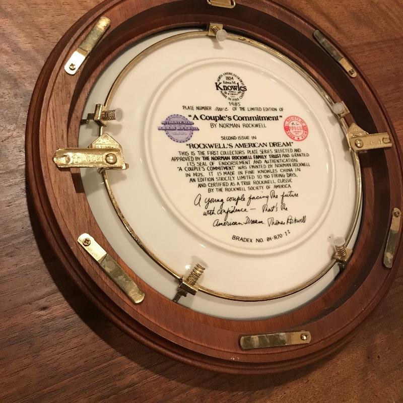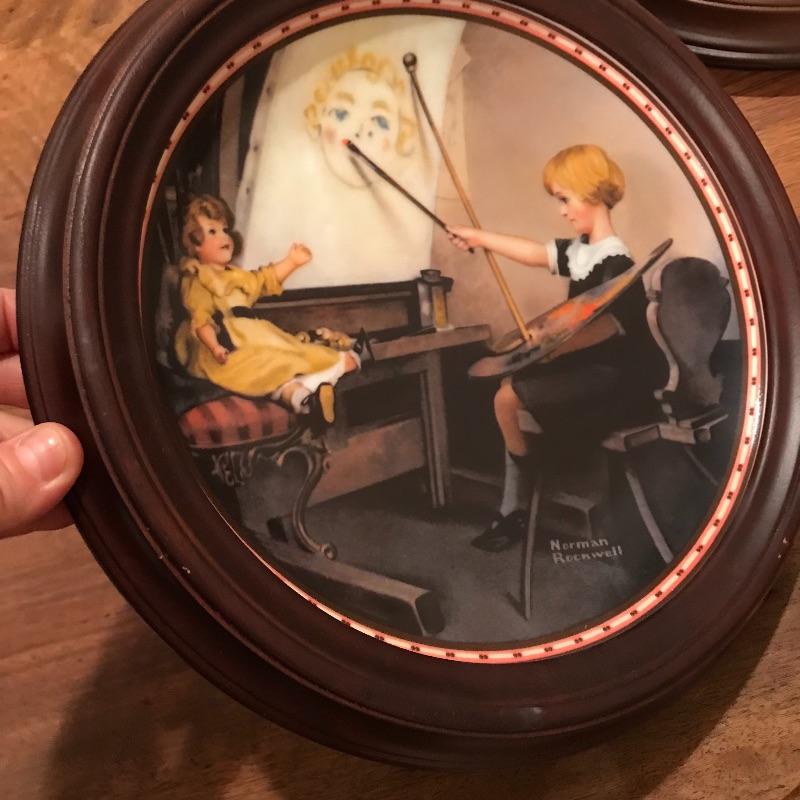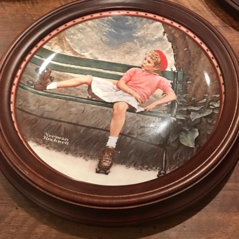 This classic Norman Rockwell plate collection includes dark wood frames that fit the plates perfectly. Collection includes Love’s Reward, Grandpa’s Gift, Rockwell’s American Dream, Breaking the Rules, A Young Man’s Dream, Sitting Pretty?, A Young Girl’s Dream, A Couple’s Commitment, and Serious Business. Each comes with a certificate of authenticity. Framed, each plate is approx. 10.5” in diameter. See pics. Shipping available.