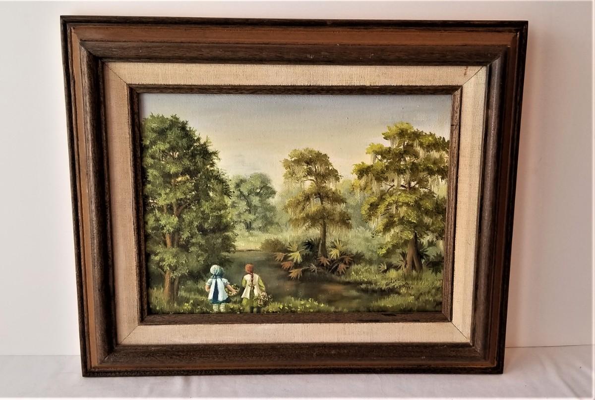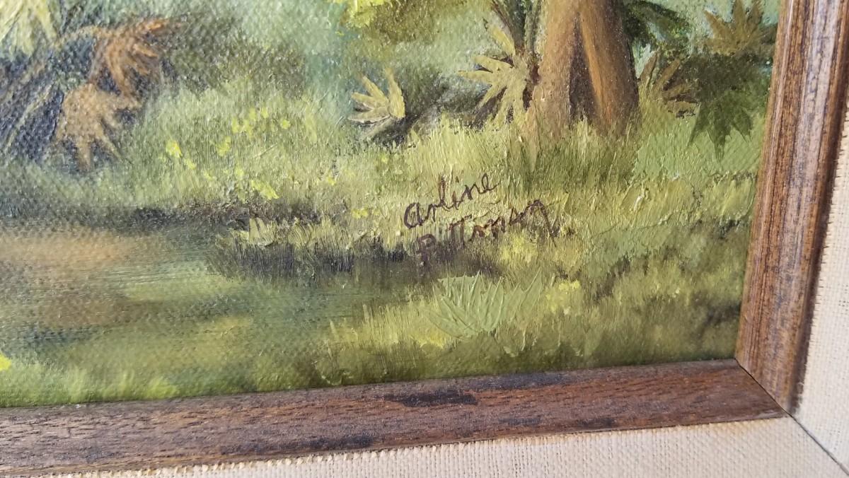 Original Oil on Canvas - signed Arline Pottsman - entitled "God's Big World". Measures 17" x 14" - good condition. There appears to be the remains of an Art League sticker on the back.