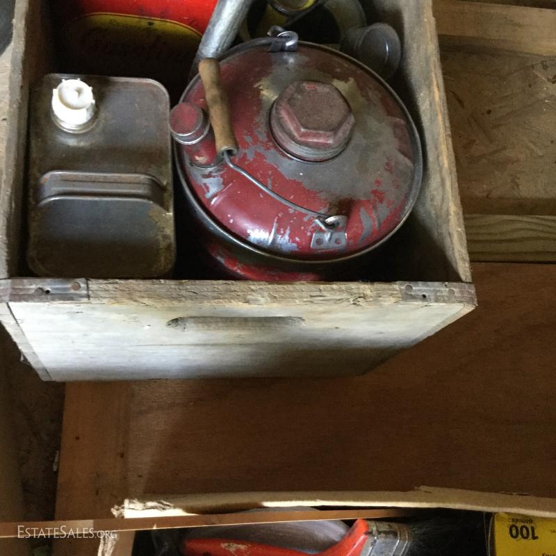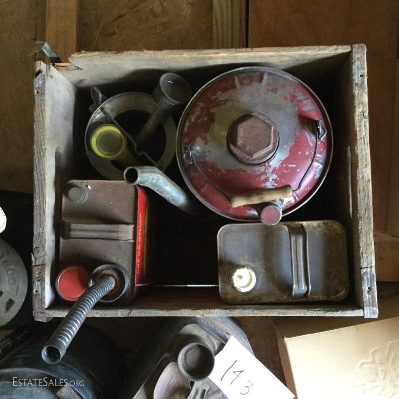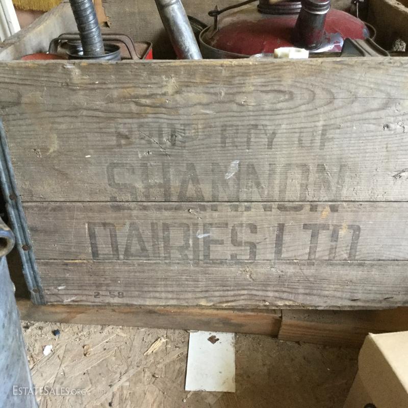 4 canisters and 3 accessories. Tallest one measures 13". One wood crate included with "Property of Shannon Daries LTD" on it. This lot is available for local pick up in Hendersonville, NC only.