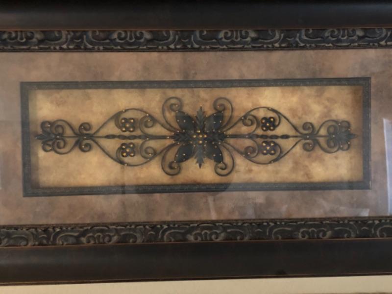 Lot 143. Rhinestone adorned wrought iron framed art (50” x 27”)--WAS $125““NOW $62.50