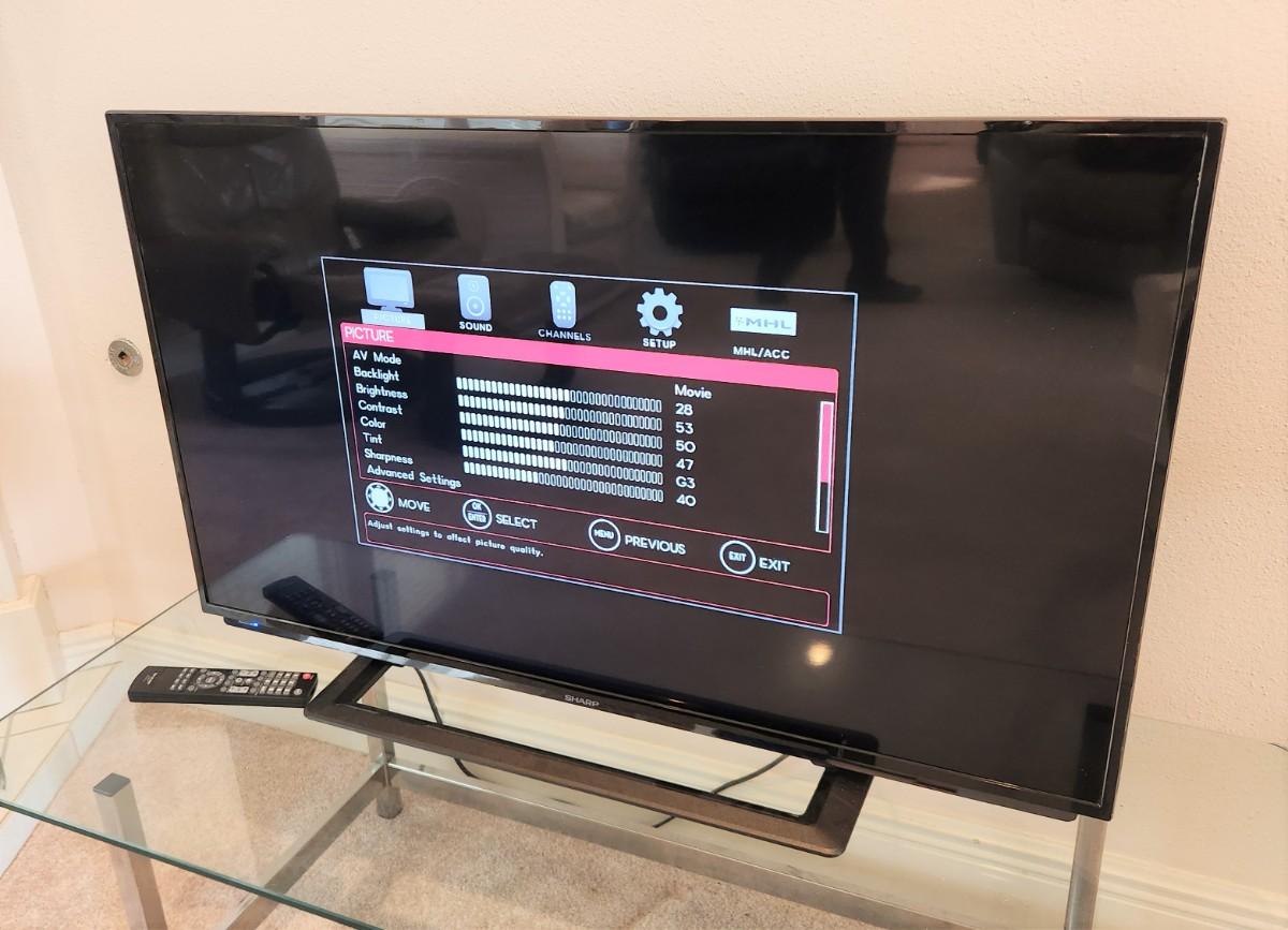 Nice working SHARP 42" Flat Screen TV with remote (remote has no batteries) - Model LC-42LB26166. Good condition.