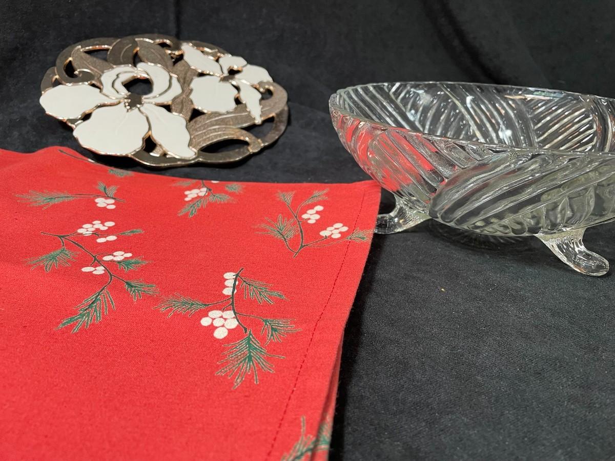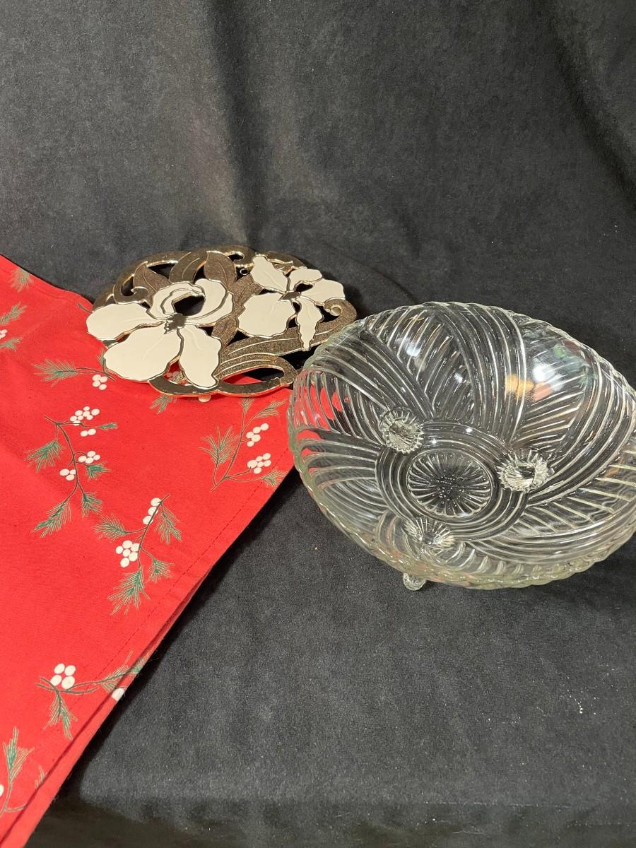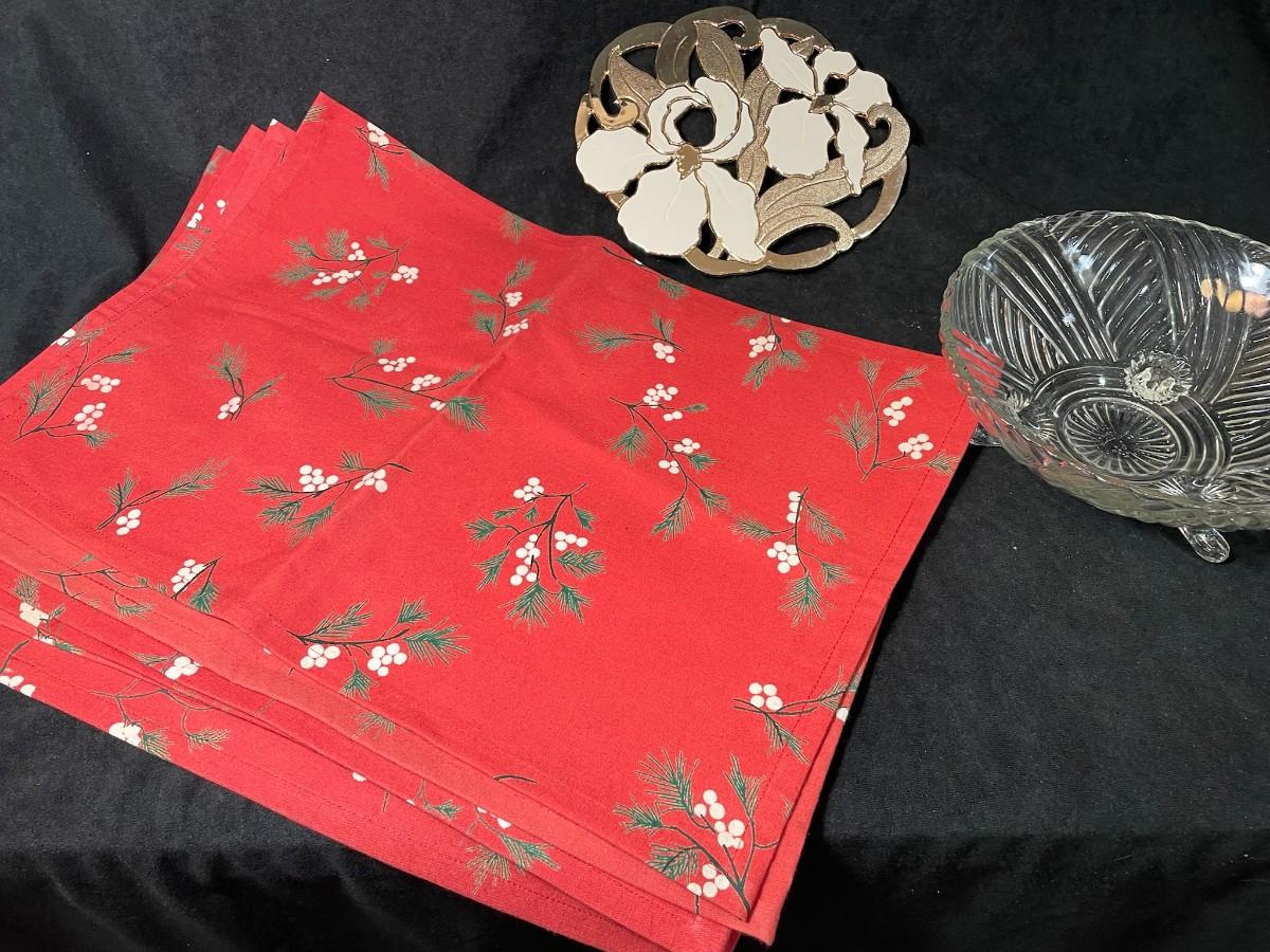 Lot 143  Six Christmas Placemats, Trivet and Bowl