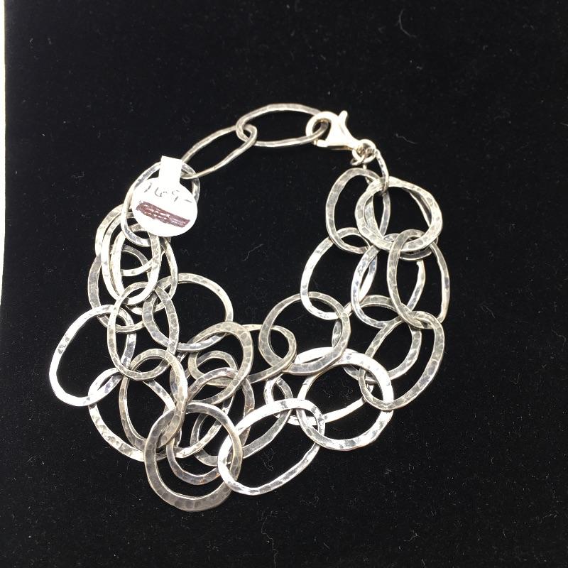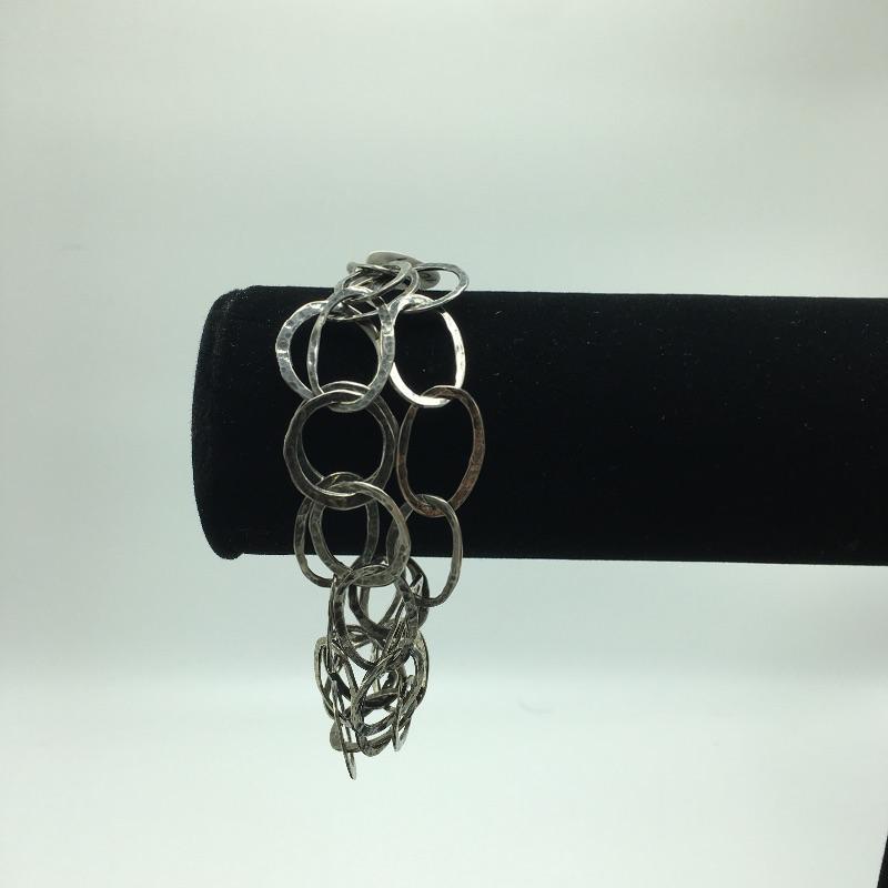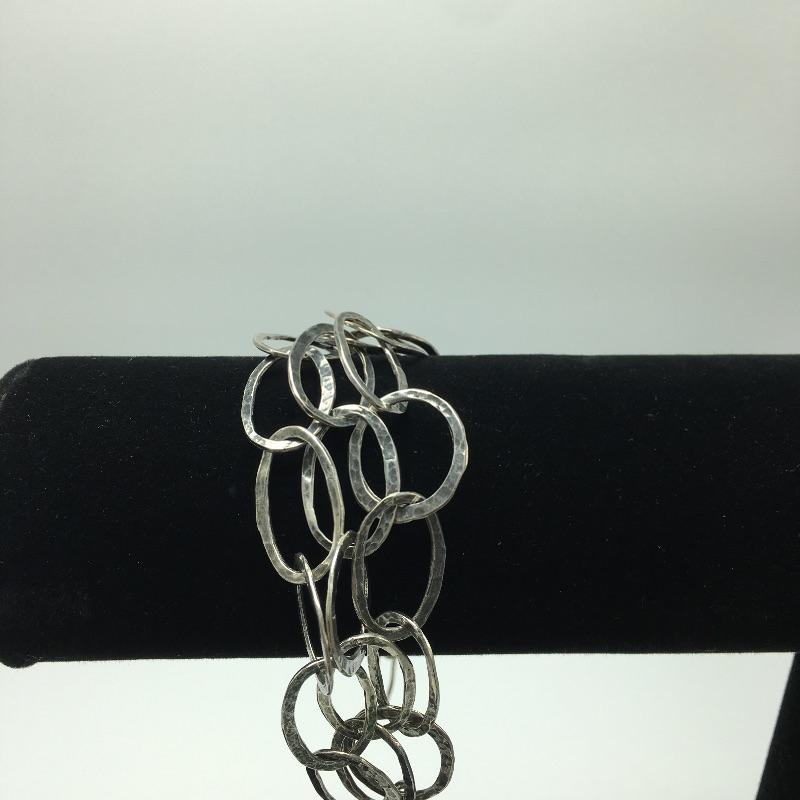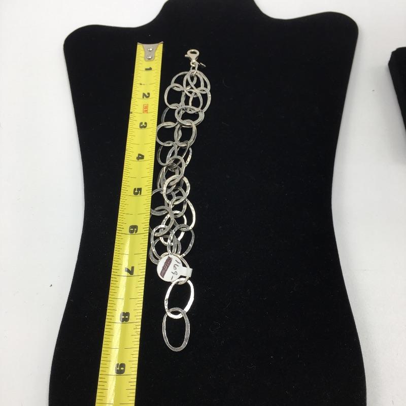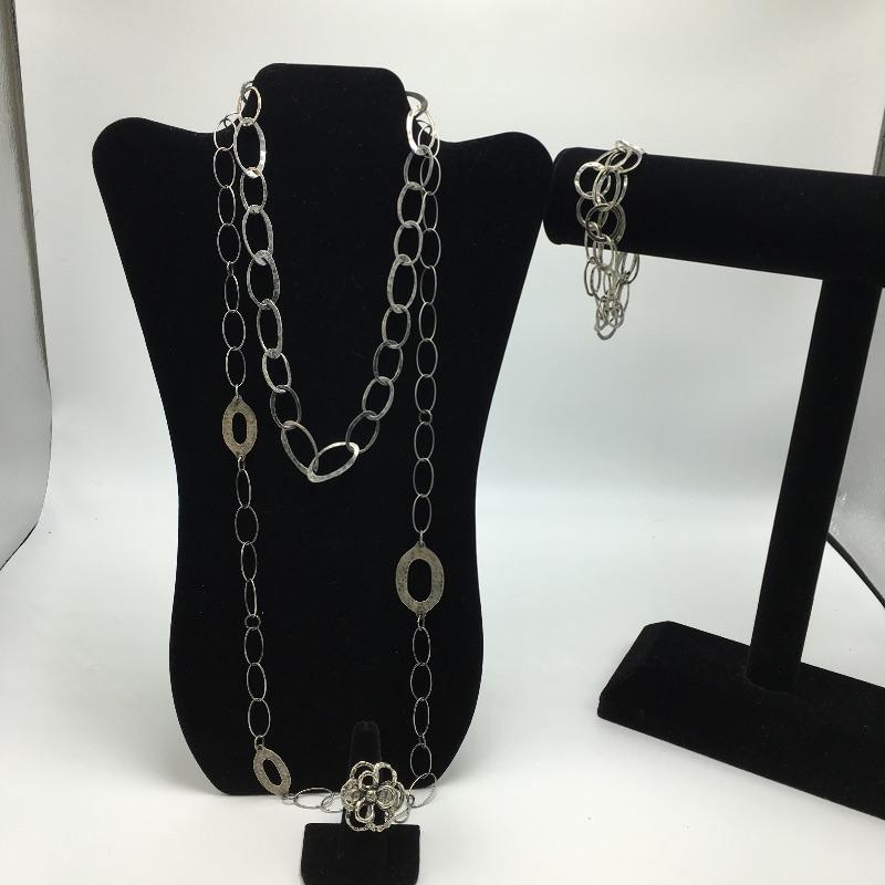 Silpada sterling silver array includes three strand oxidized sterling silver bracelet that fits a wrist up to 8.25”, hammered sterling silver link necklace that measures 19”, sterling silver flower ring and a sterling silver necklace that measures 33”