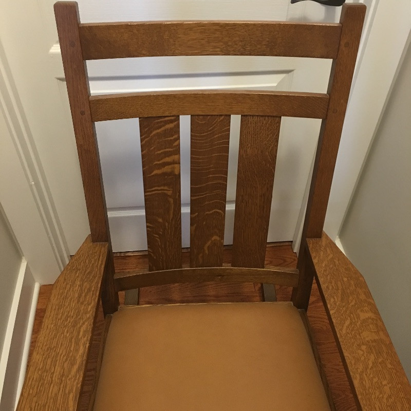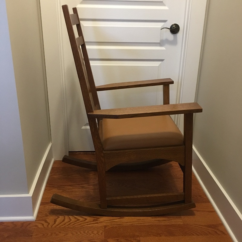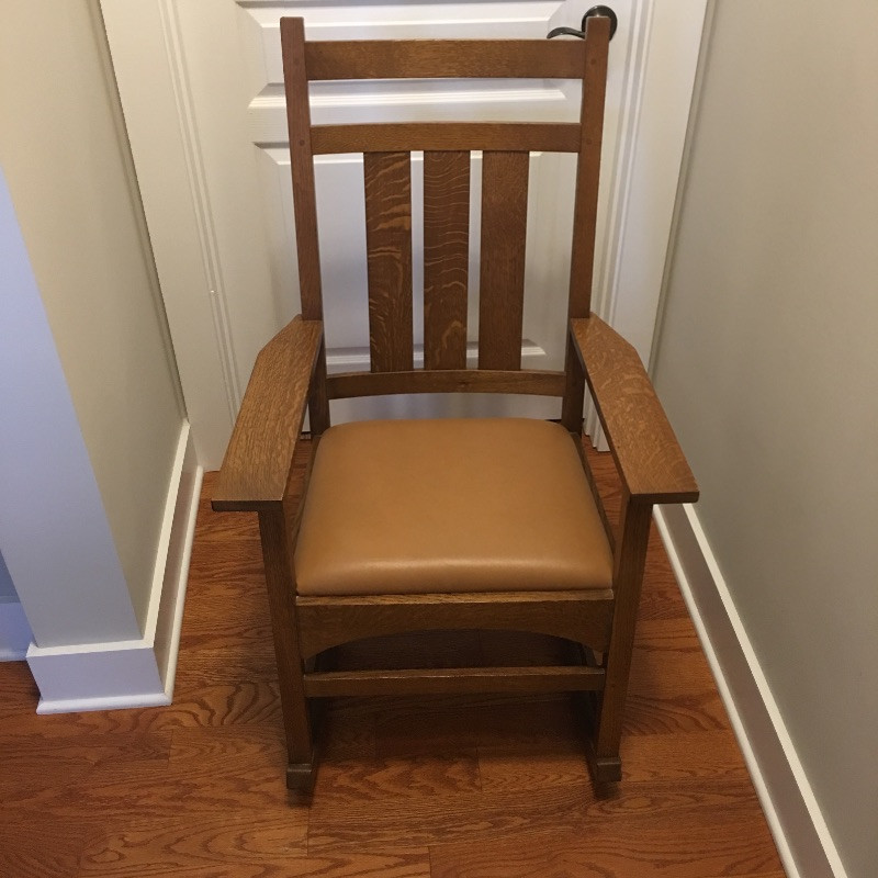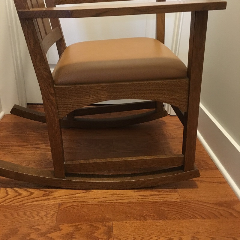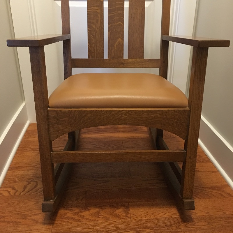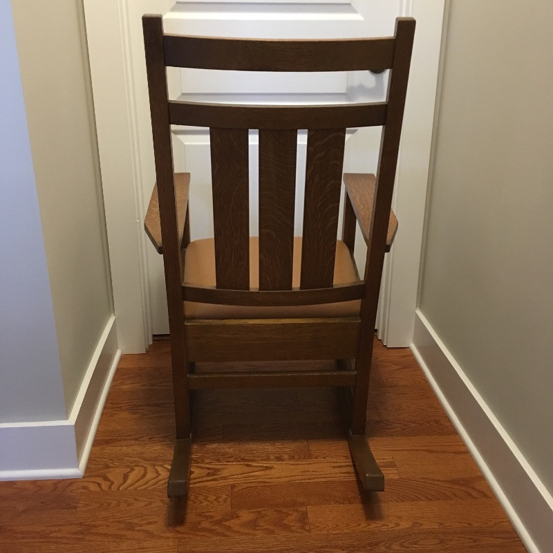 Stickley rocking chair shows there is still good craftsmanship available with this well made chair that will be a beautiful addition to any home, Item is in excellent condition and measures 24.75” x 30” x 39.5” with a 19” seat height.