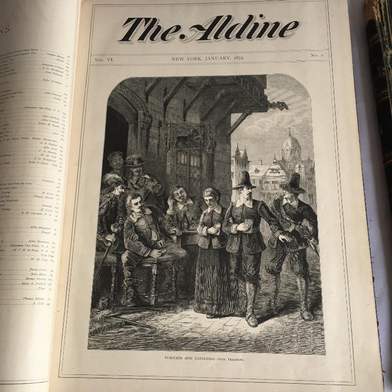 Step back in time with this amazing pair of books from the eighteen seventies. Included in this lot is The Aldine A Typographic Art Journal Volume VI - 1873 with original price from the binder and The Aldine volume IV - 1872. Binding has some wear, see pictures.