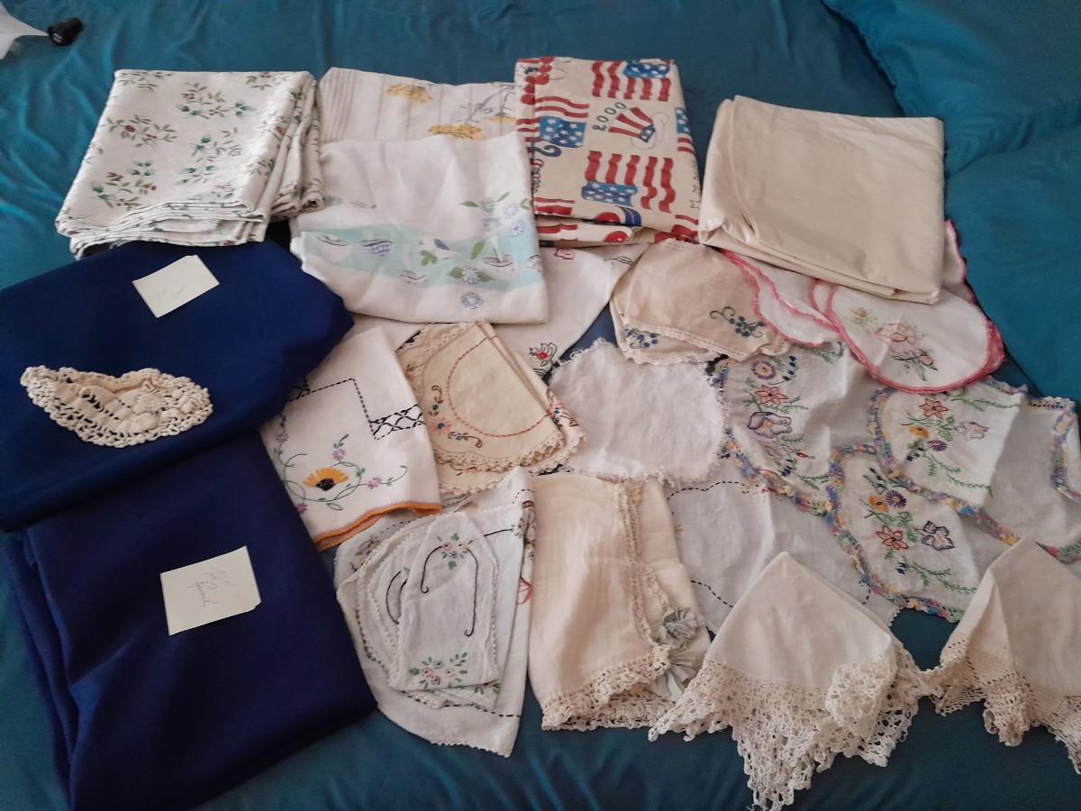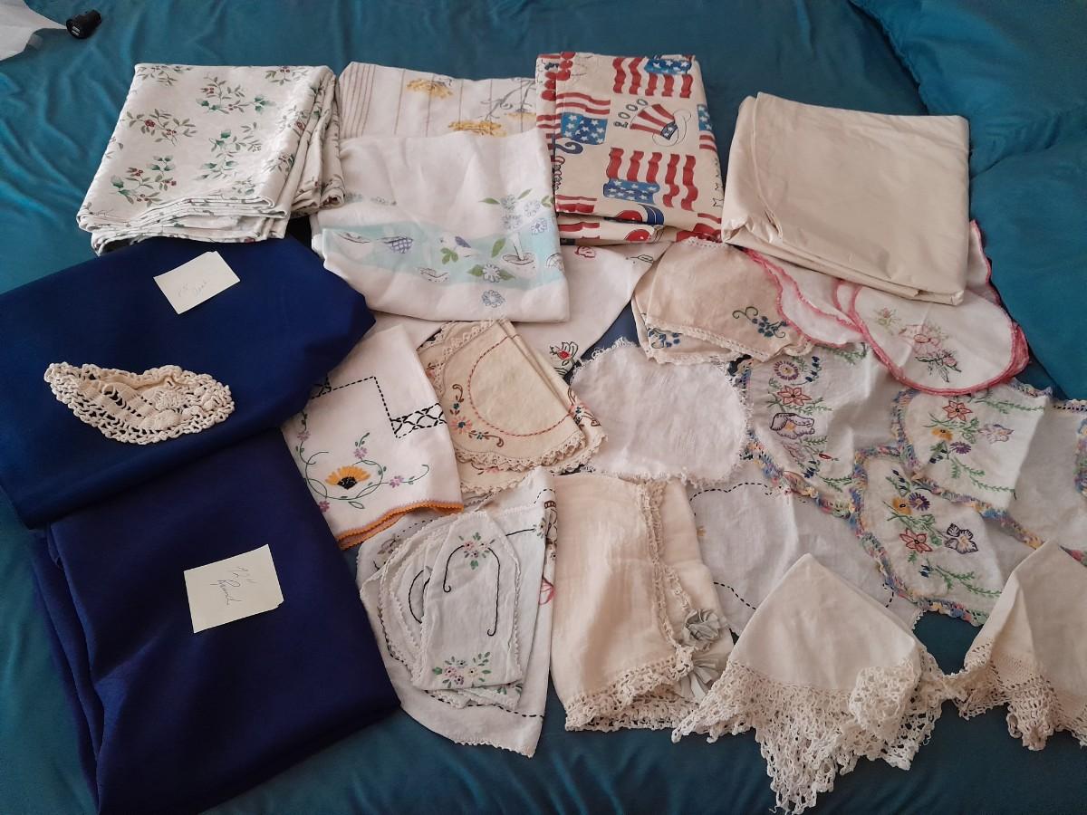 VARIETY OF VINTAGE EMBROIDERED LINENS AND MORE