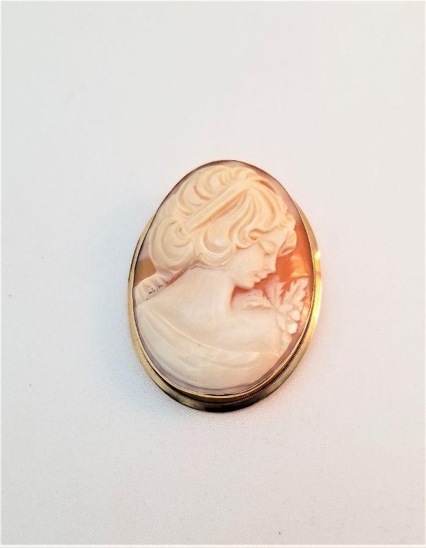 Lot #143 Vintage Carved Cameo Brooch with 14kt Gold Mount