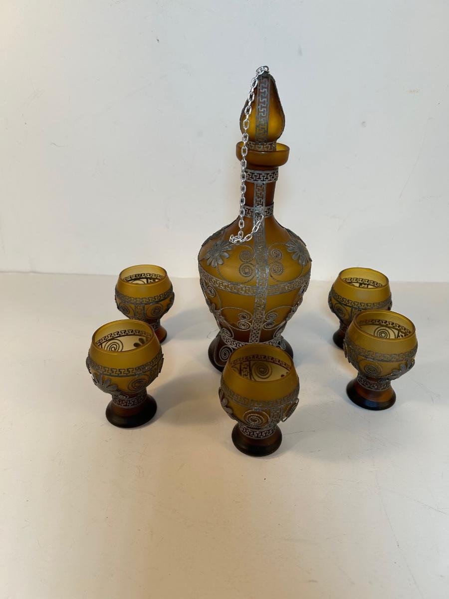 Lot 143. Vintage Satin Amber Glass Decanter Set