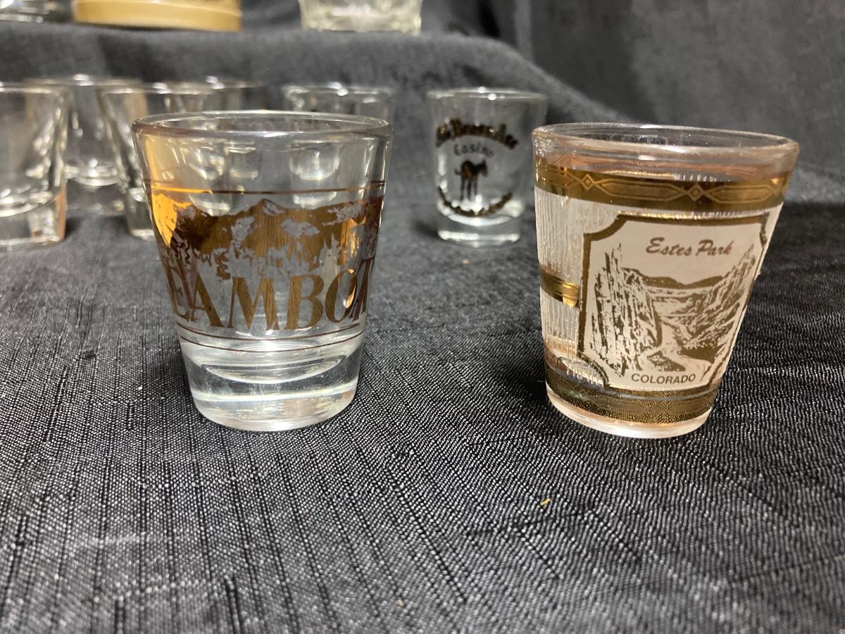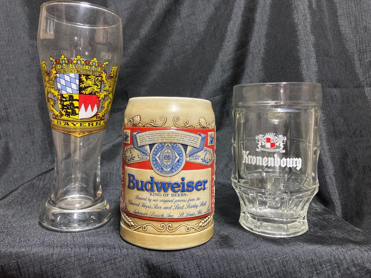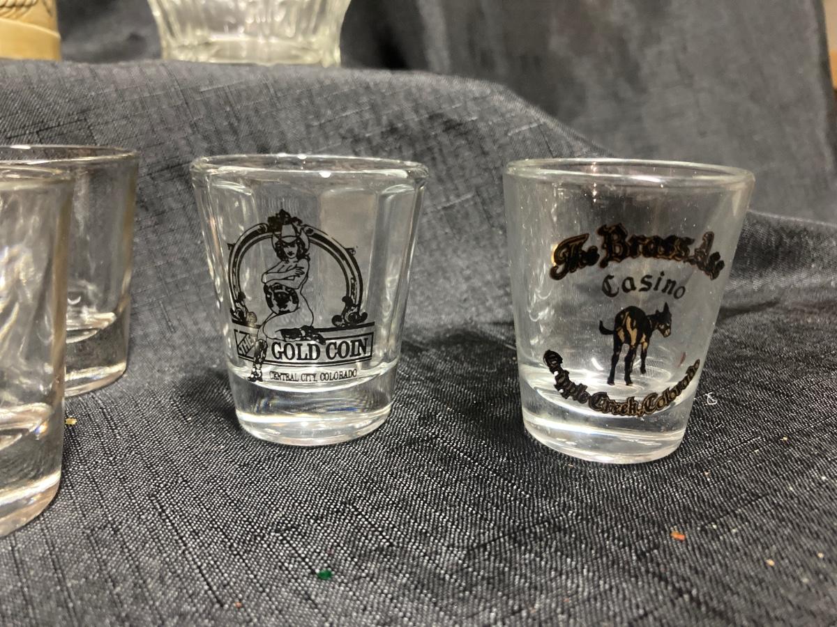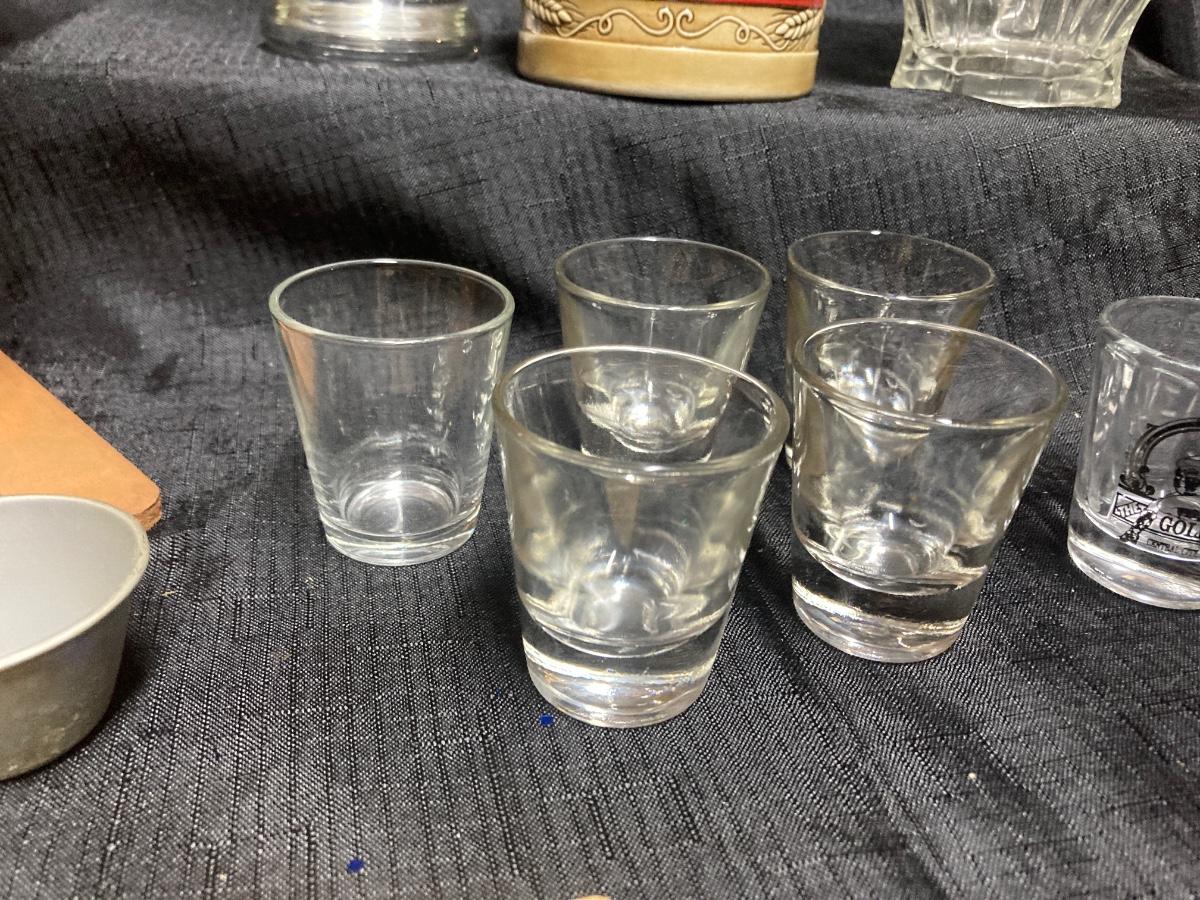 LOT 143 VINTAGE WHISKEY WELL, SHOT GLASSES, BUDWEISER BEER STEIN AND BEER GLASSES (Basement)