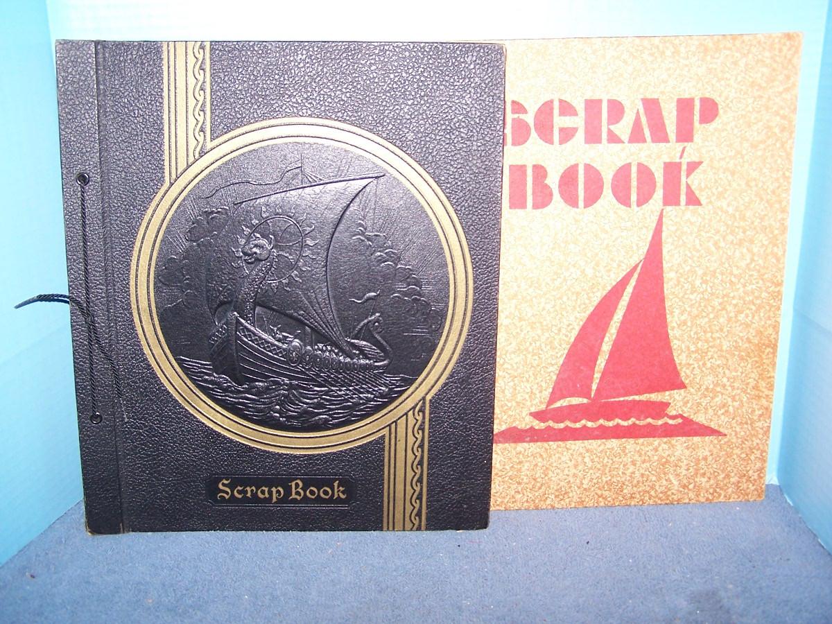 THESE ARE WONDERFUL VINTAGE MCM SCRAP BOOKS!!! ONE IS COMPLETELY UNUSED, AND THE OTHER IS FULL OF GREAT STUFF/ARTICLES!!! LIGHT WEAR...