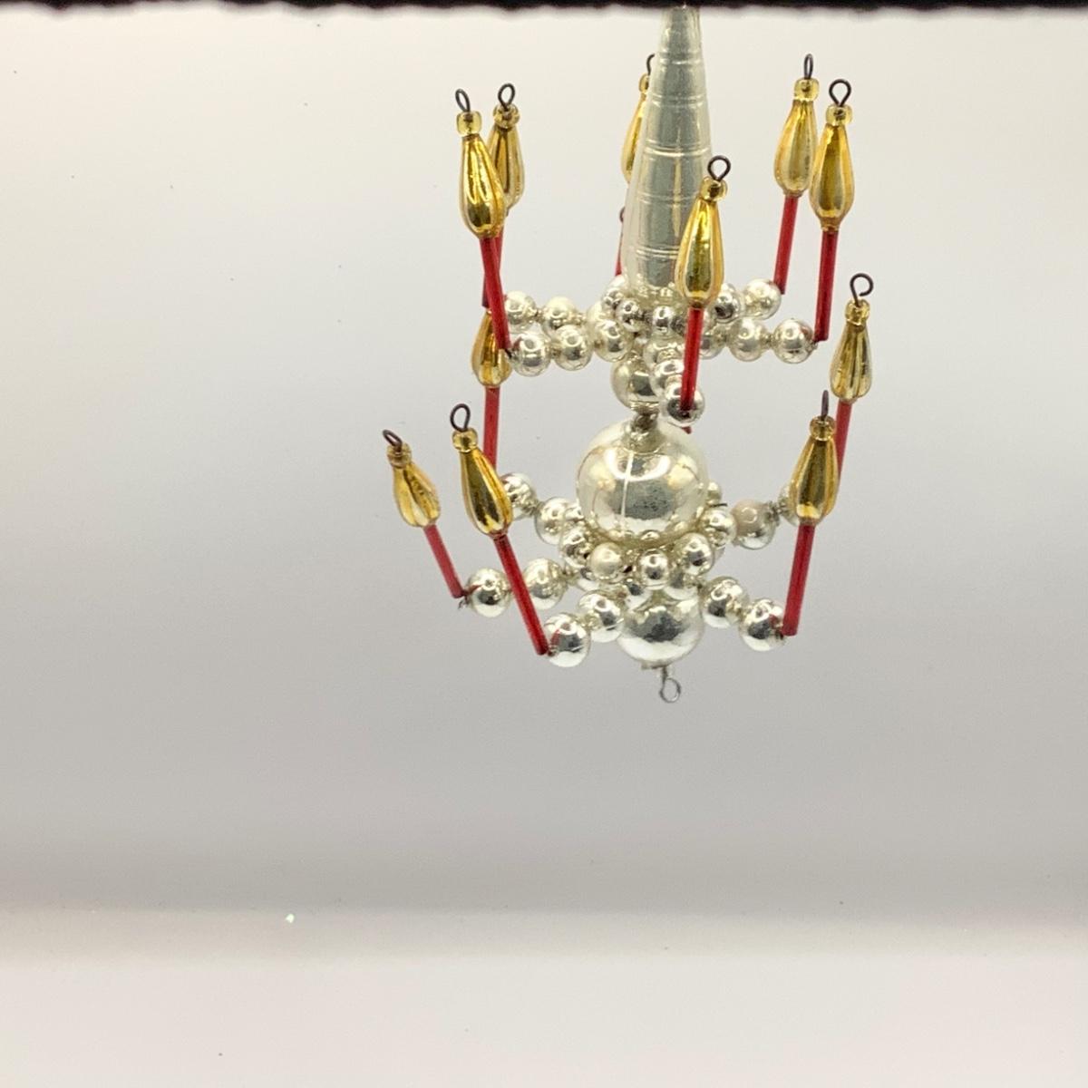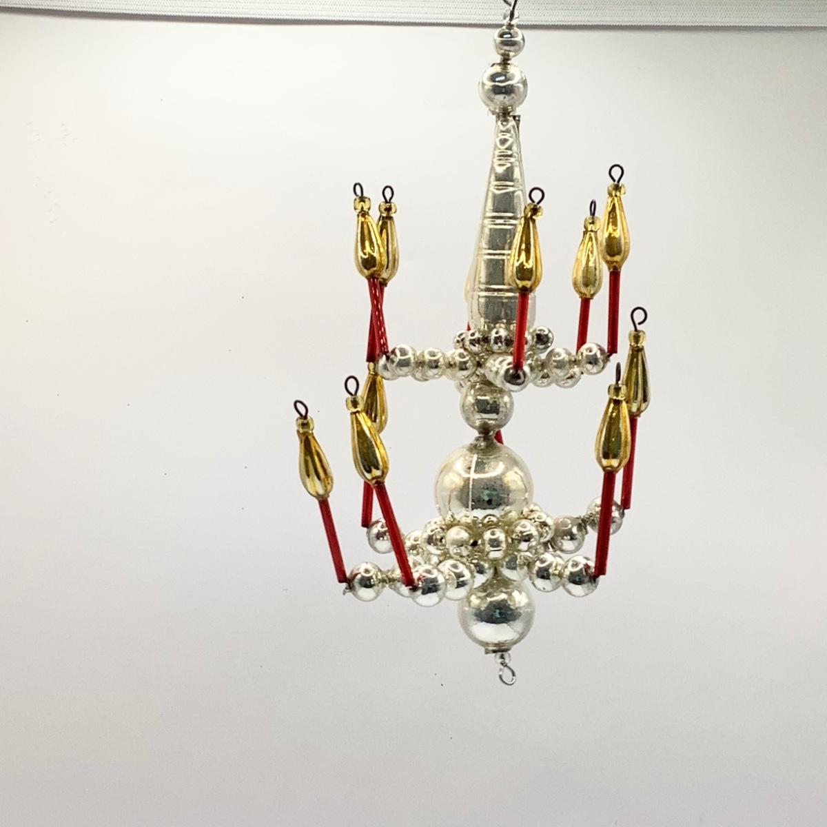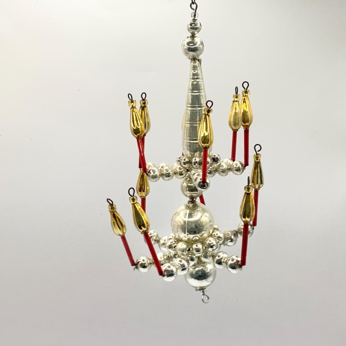 Lot 1432. Vintage Christopher Radko Glass Ornament, Silver Beaded Chandelier