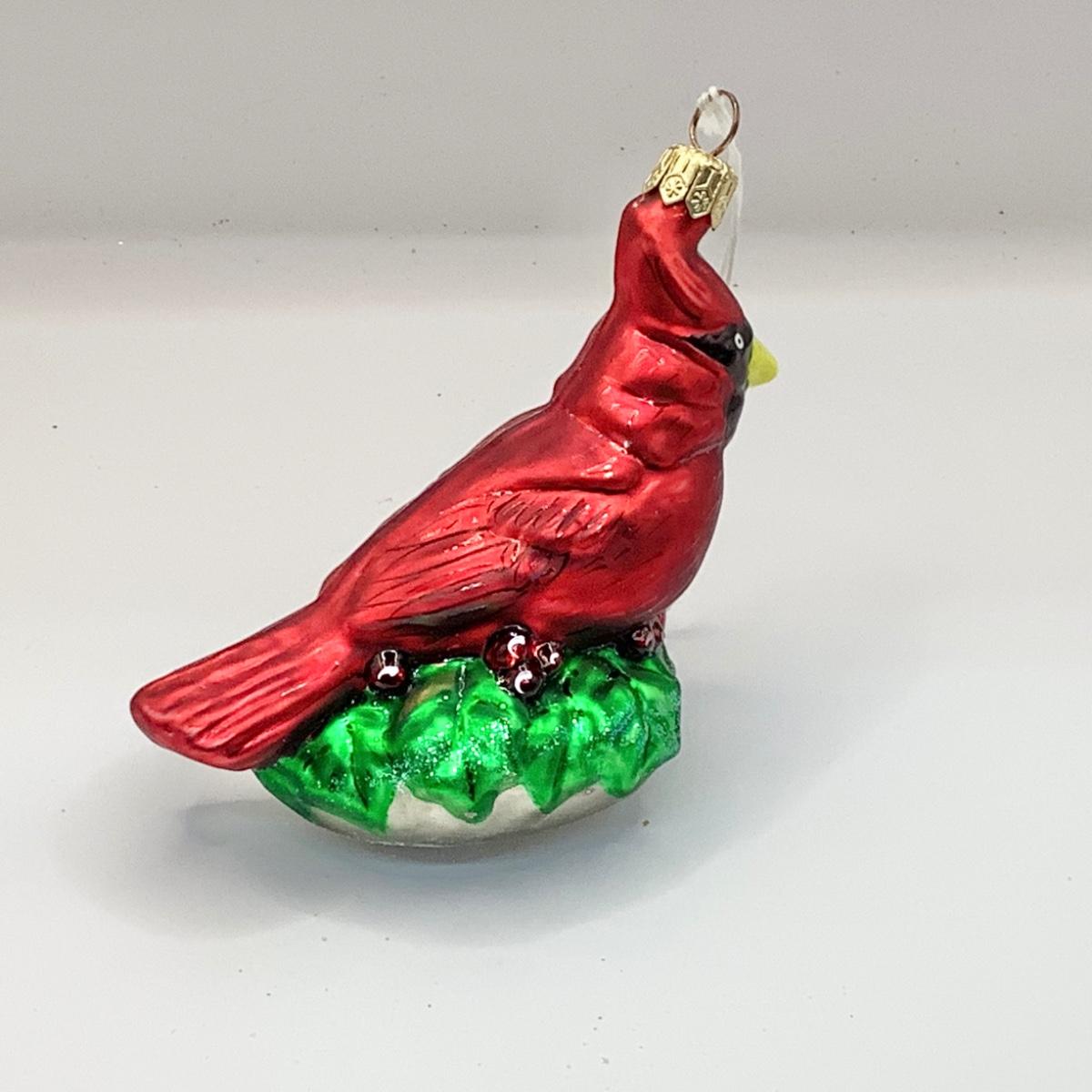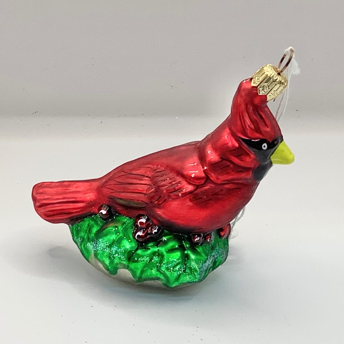Vintage Christopher Radko Glass Ornament, Red Cardinal with Holly