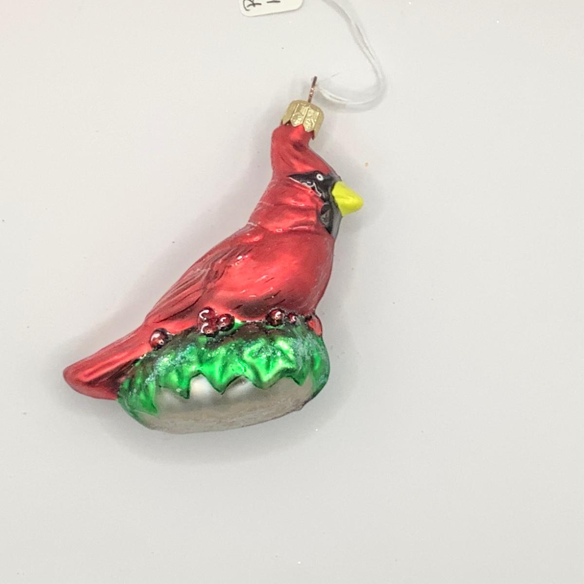 Lot 1436 Vintage Christopher Radko Glass Ornament, Red Cardinal with Holly