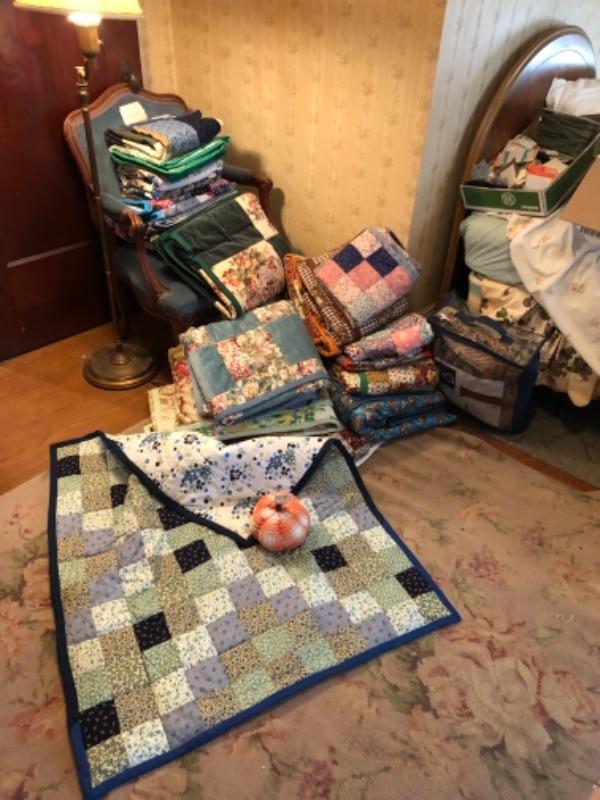 Lot 143F. Large collection (26) of handmade patchwork quilts, never used, assorted sizes--$300