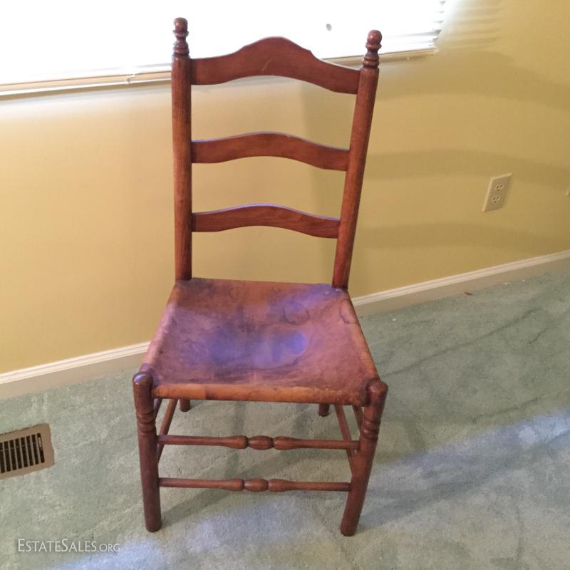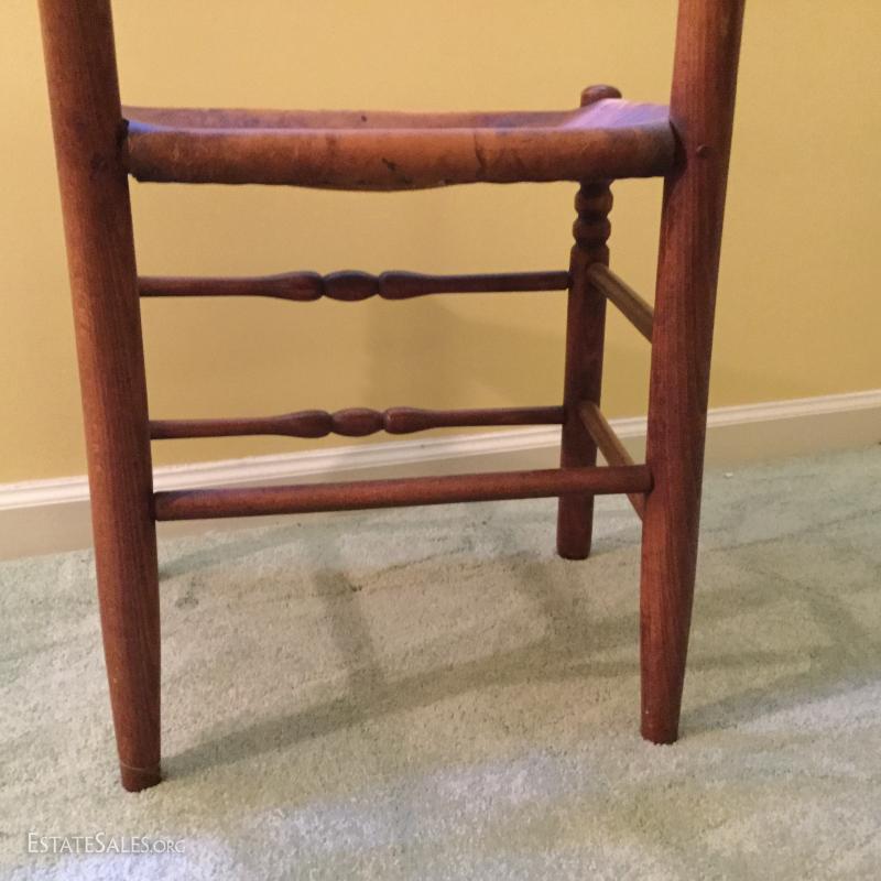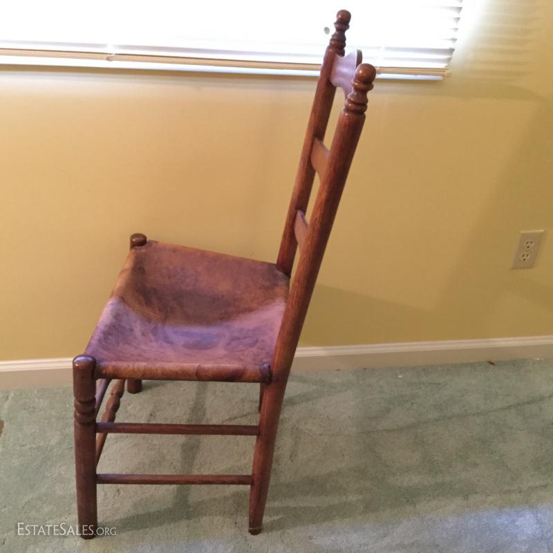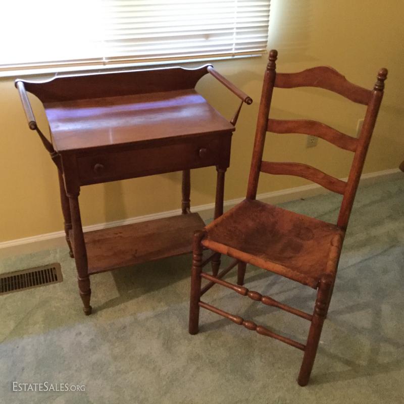 Lot 144- Antique Wash Stand and Leather and Wood Side Chair