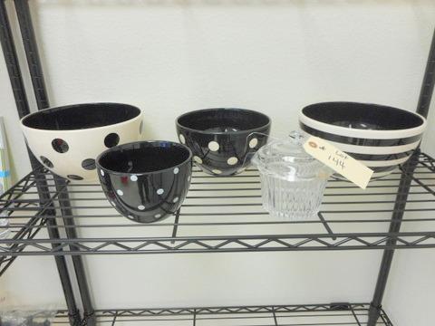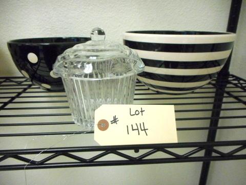 Lot 144 - 4 Large Sized Ceramic bowls + 1 Lg. Glass Cup Cake Dish