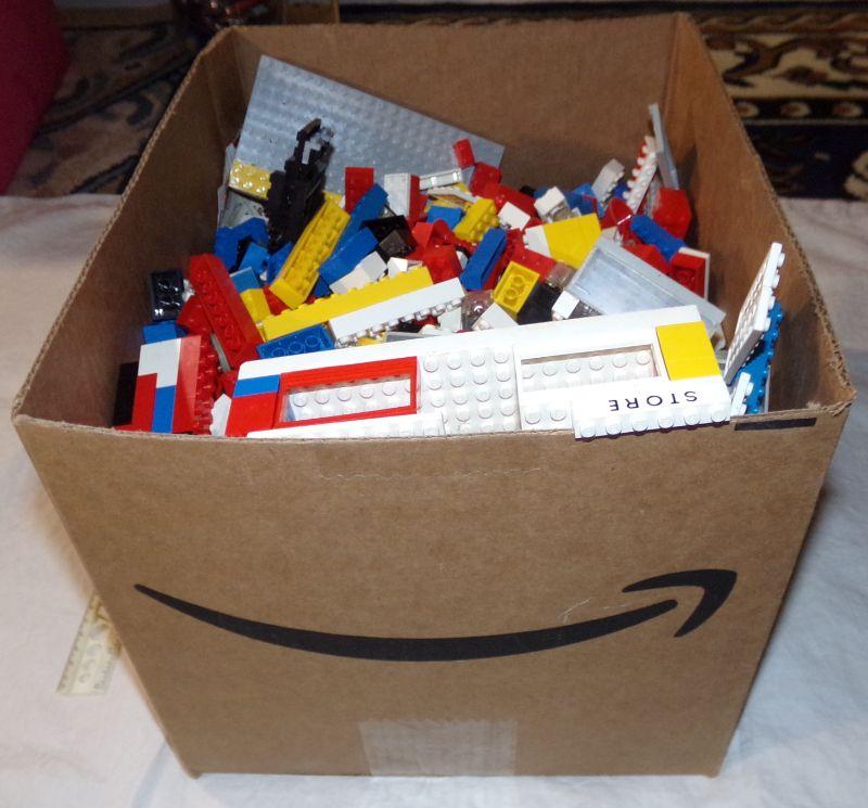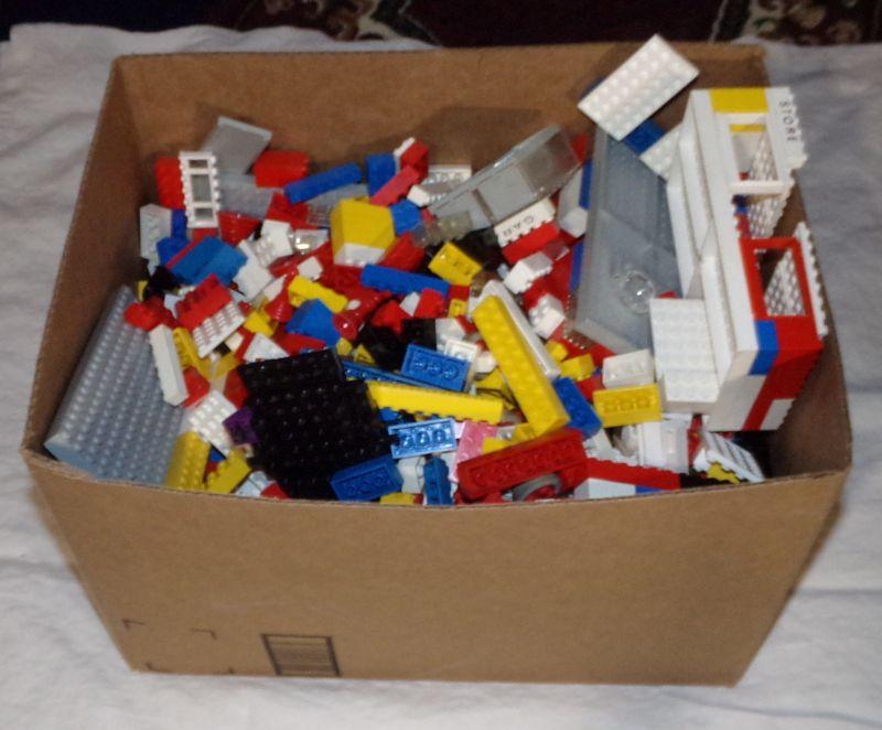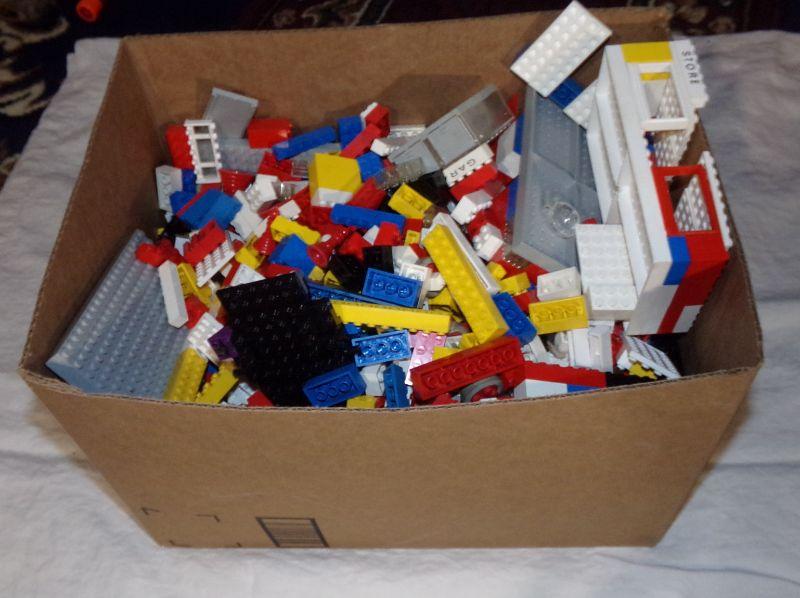 1 BOX FULL OF ALL SHAPES AND SIZES OF LEGOS