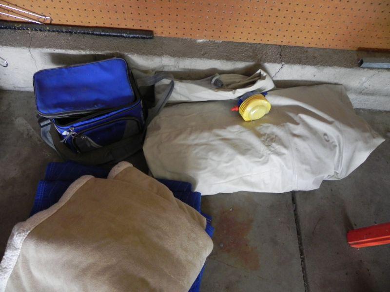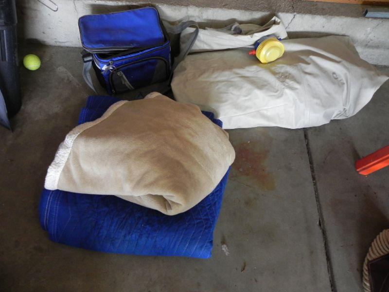 LOT 144 DESK CHAIR, AIR MATTRESS, MOVING BLANKETS