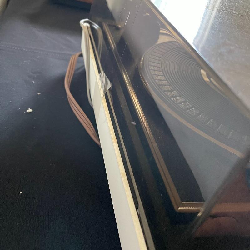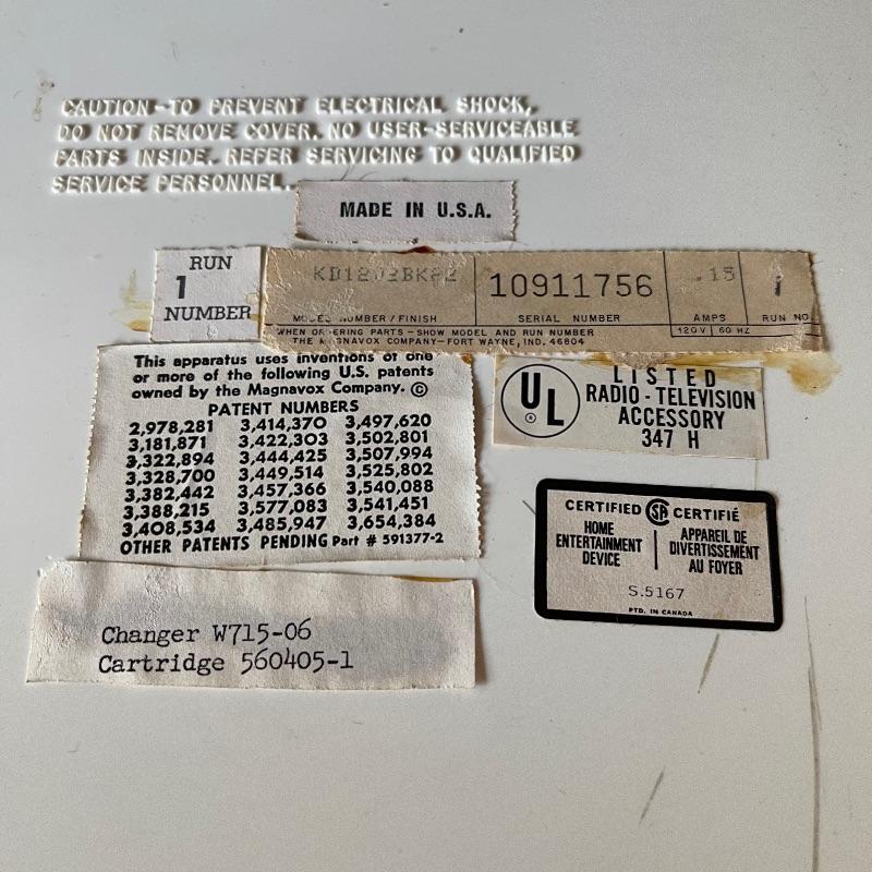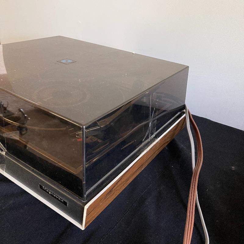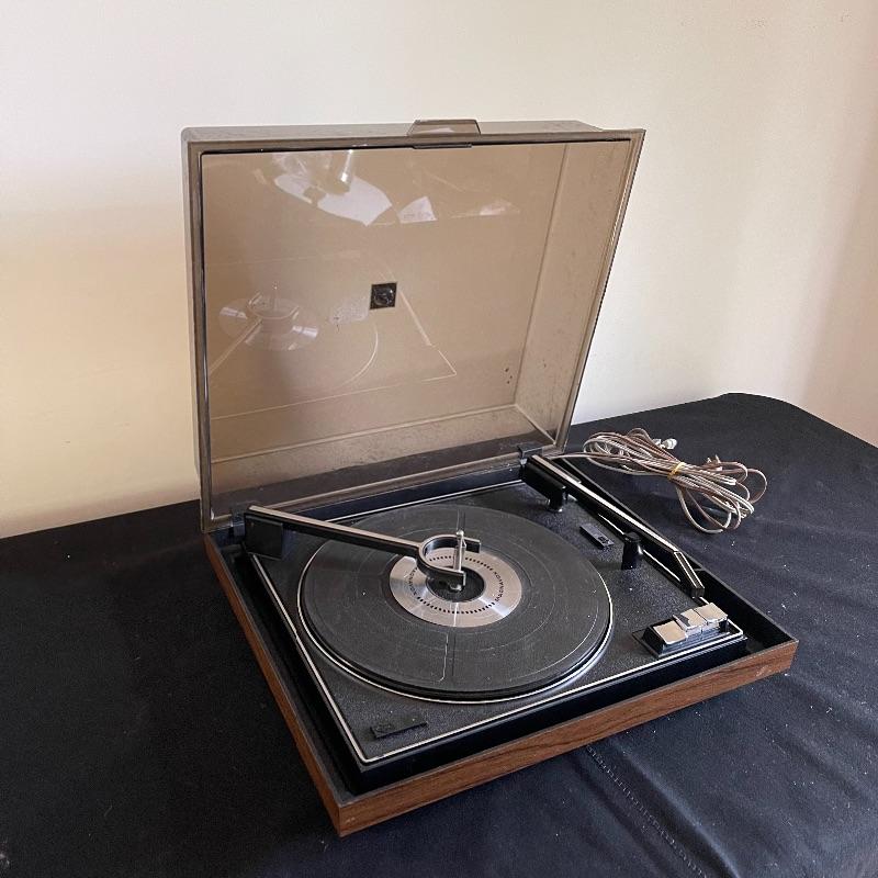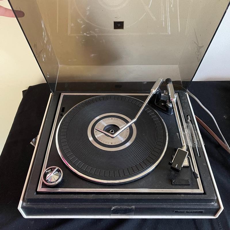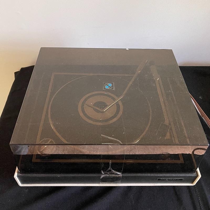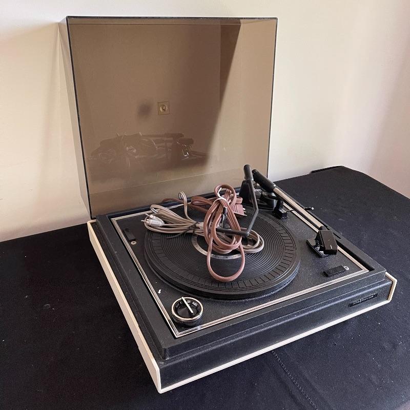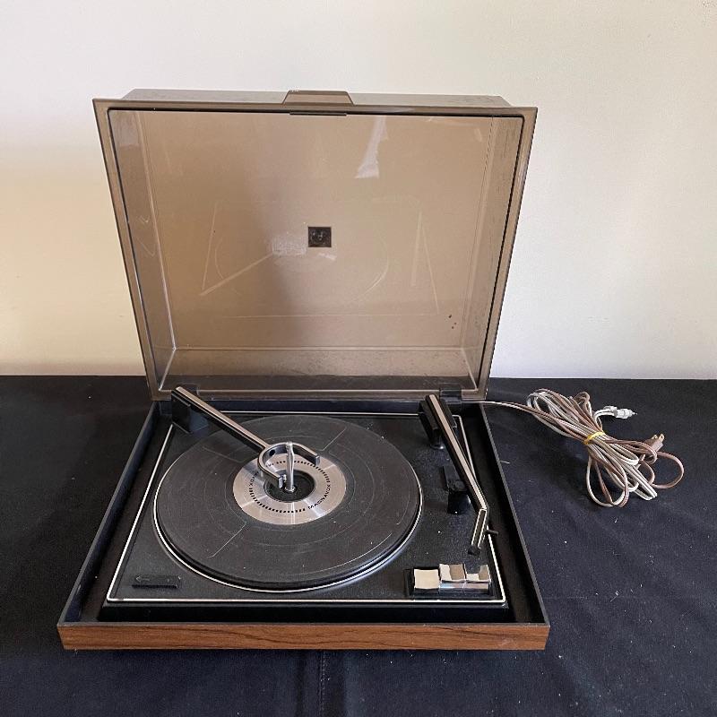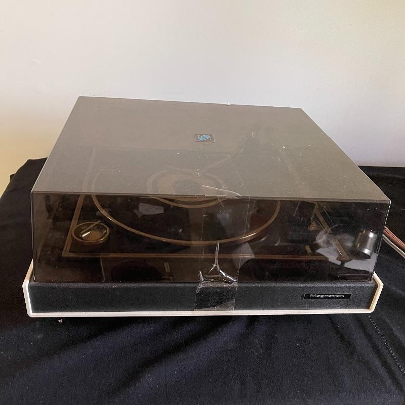 Three Magnavox turntables with plastic lids. The model number of the first turntable is 2K8884 and this unit powered on when tested and the turntable turned. The second is KD1204WA21. The last is KD1202BK22. These last two units have a different type of plug, see pictures.