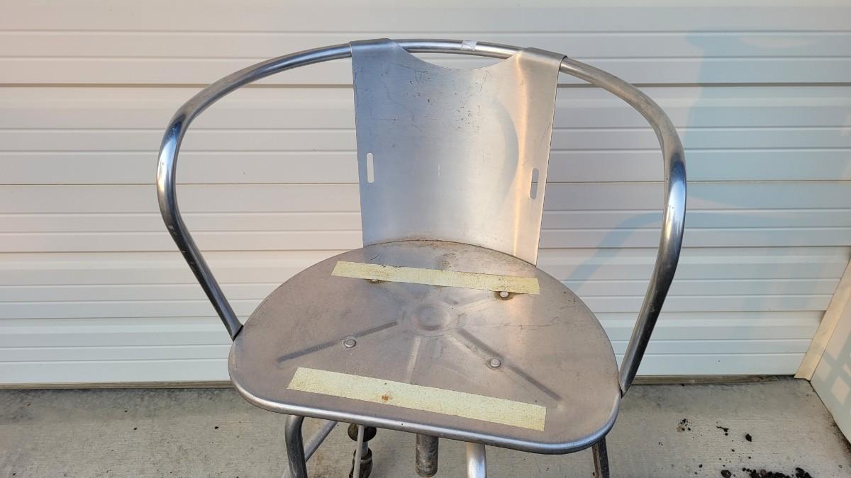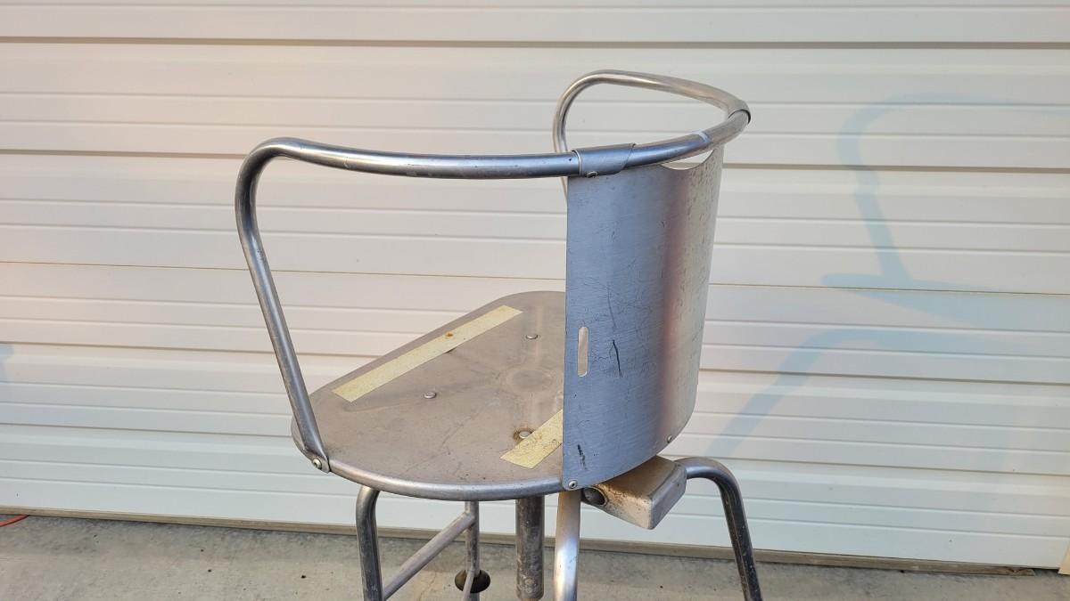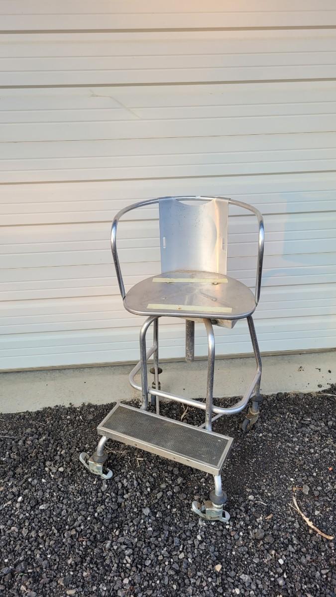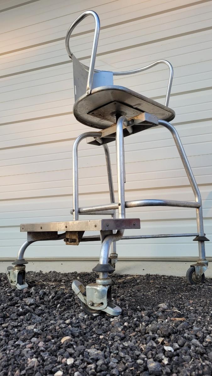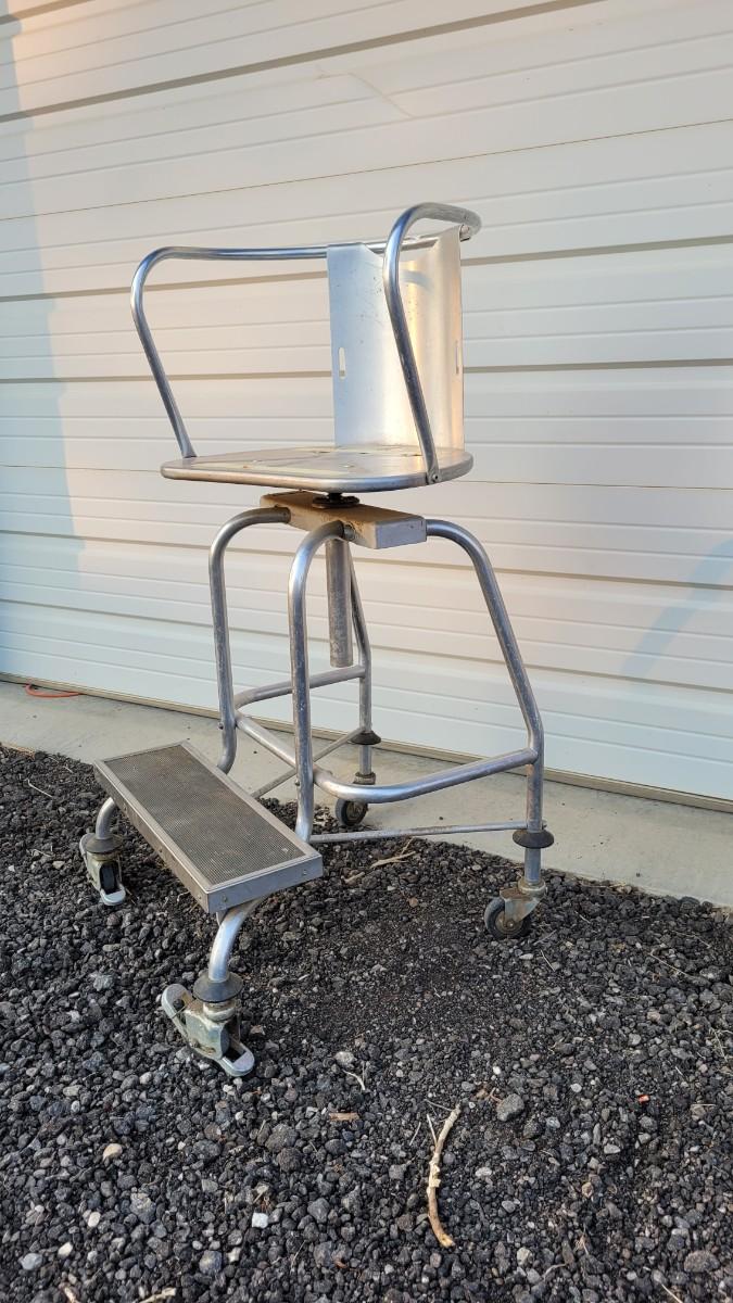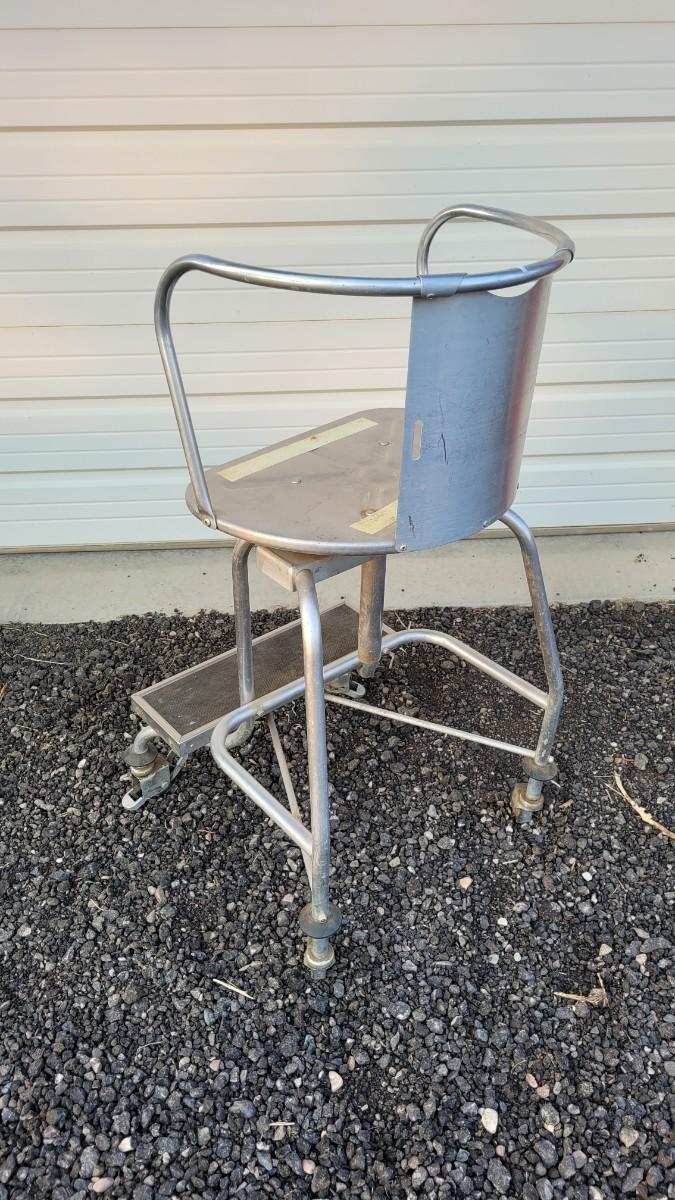 Lot 144: Vintage Metal Industrial Large Stool w/ Step and Wheels