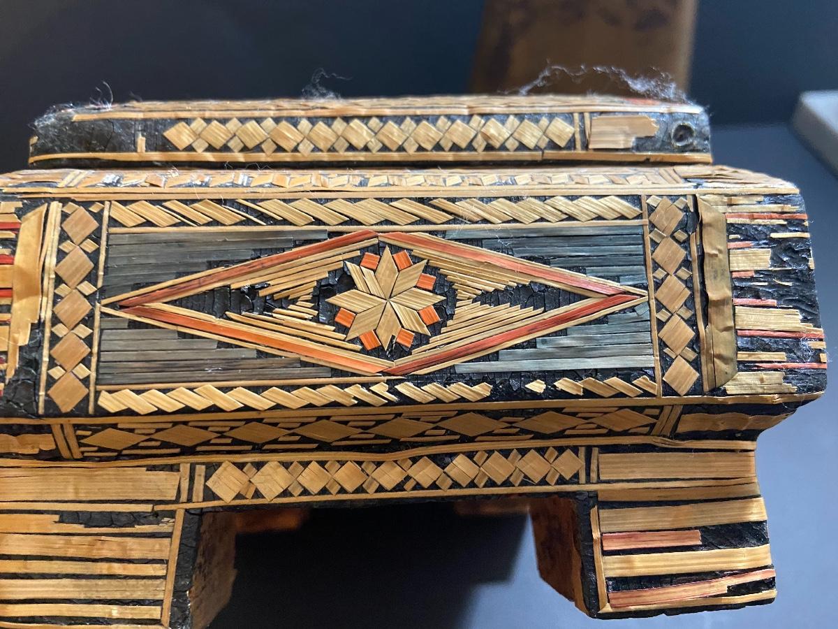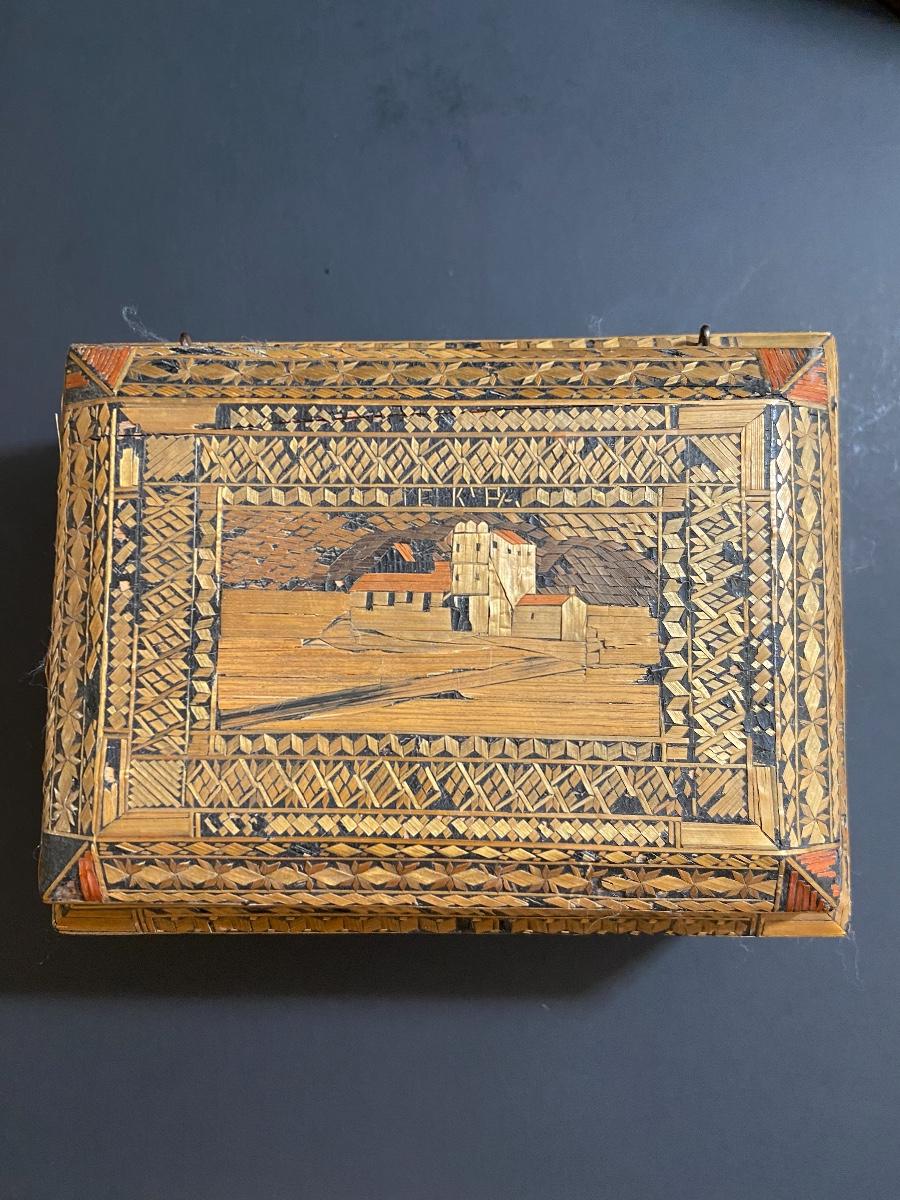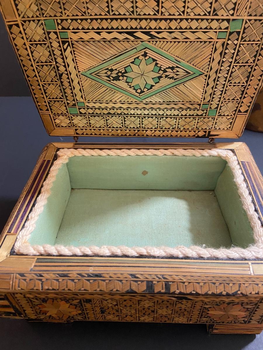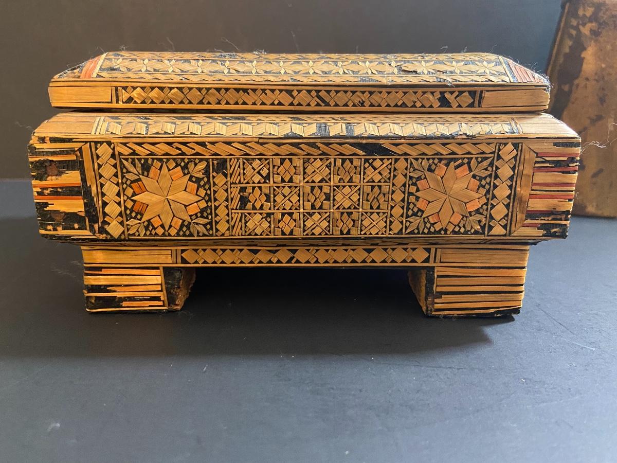Lot 144: Six vintage and antique items: Trinket box, bells, candle holder +