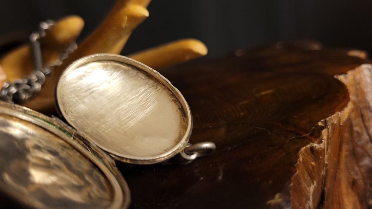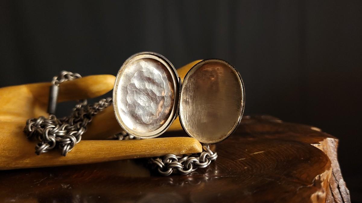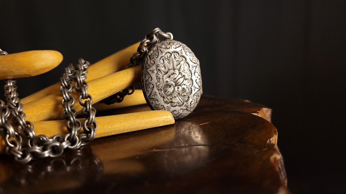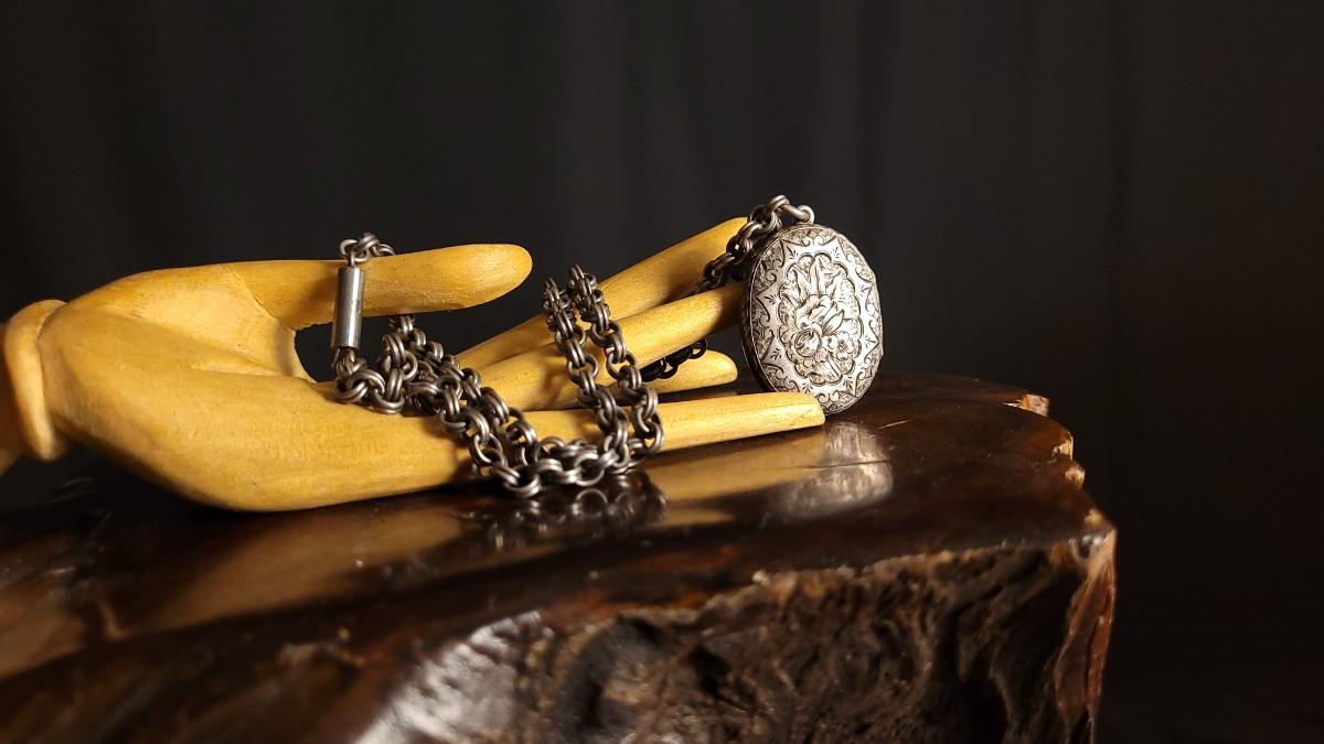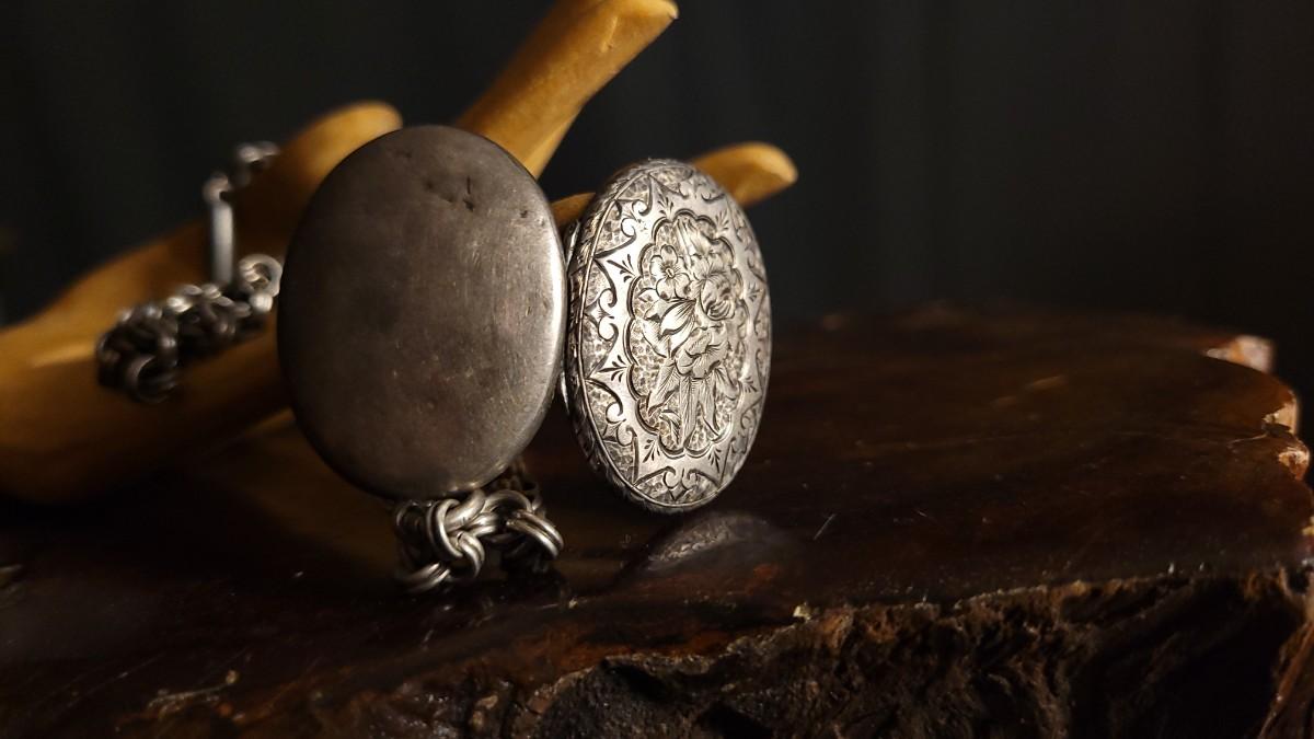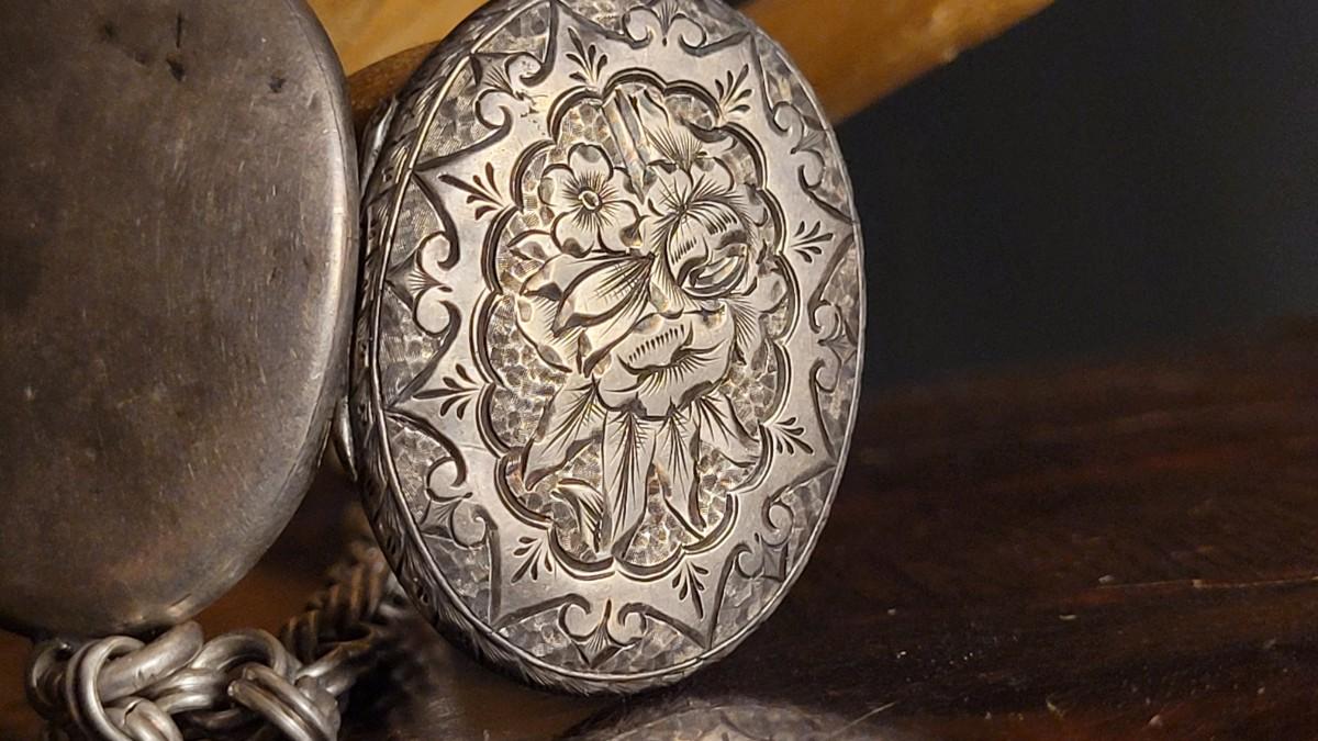 Lot 144: Antique FLORAL Chased Locket Pendant Silver Tone