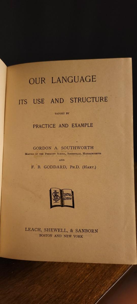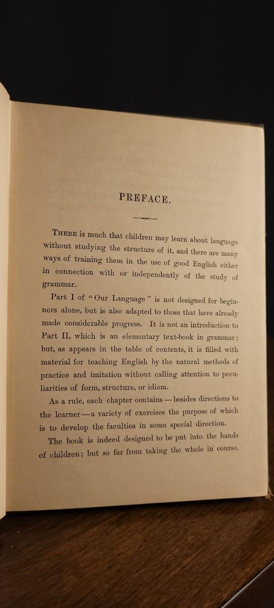 Lot 144: Antique 1887 Hardback OUR LANGUAGE It's Use and Structure Taught by Practice and Example PART 1