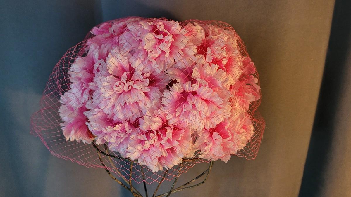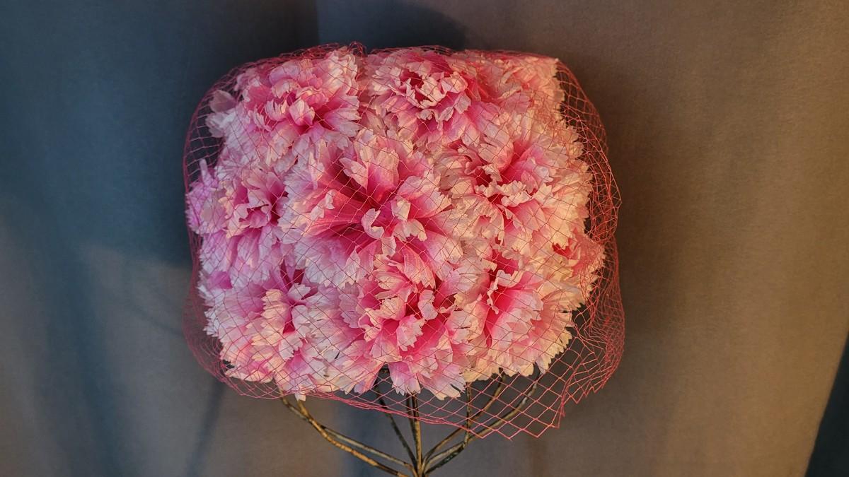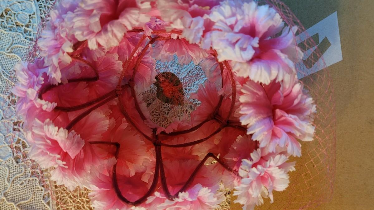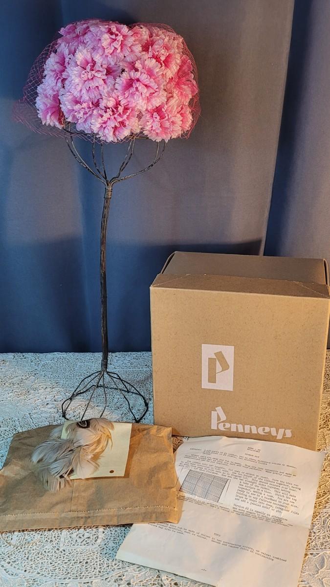 Lot 144: Vintage Pink Flower Hat with Box and Hat Trimmings