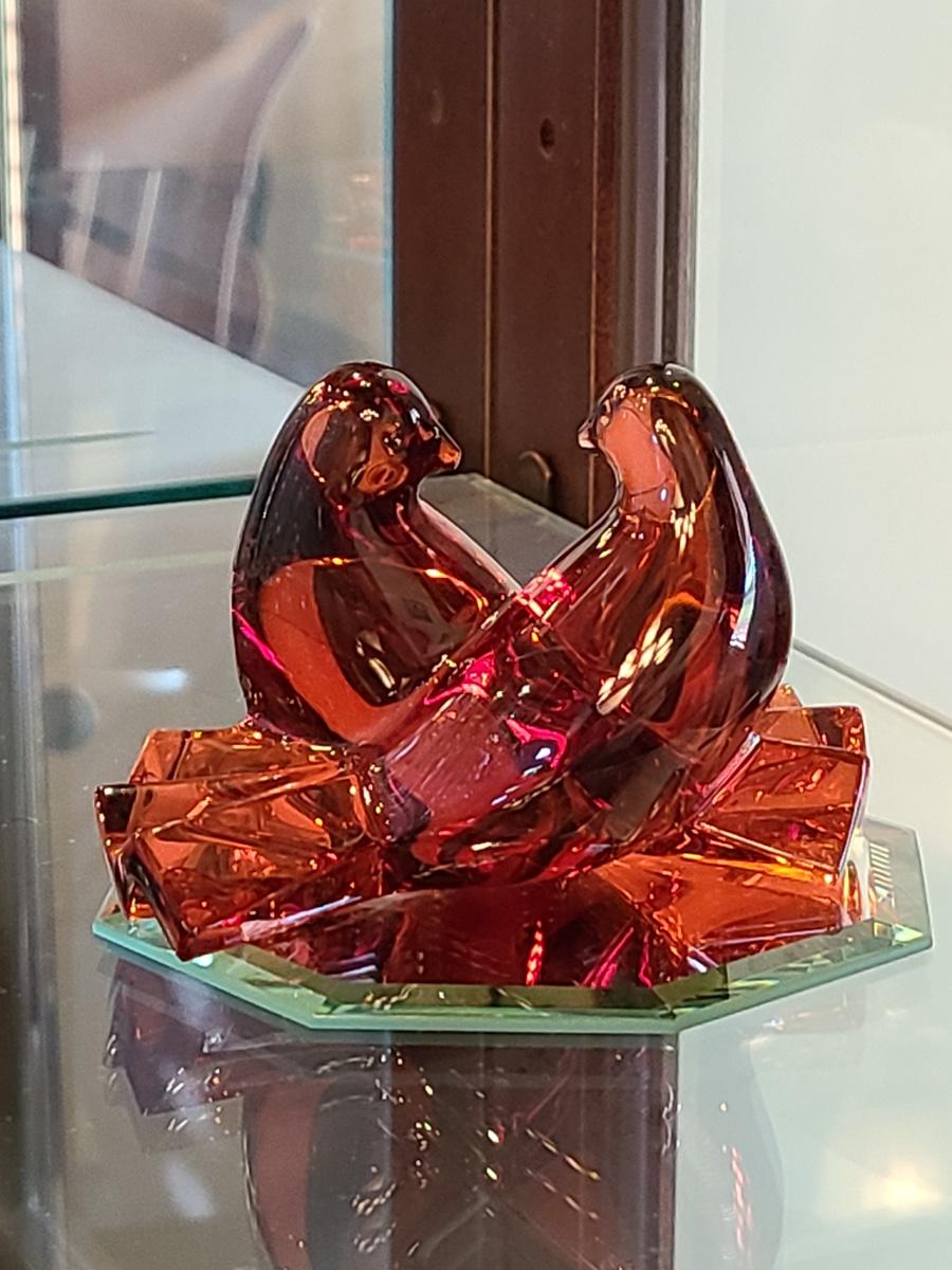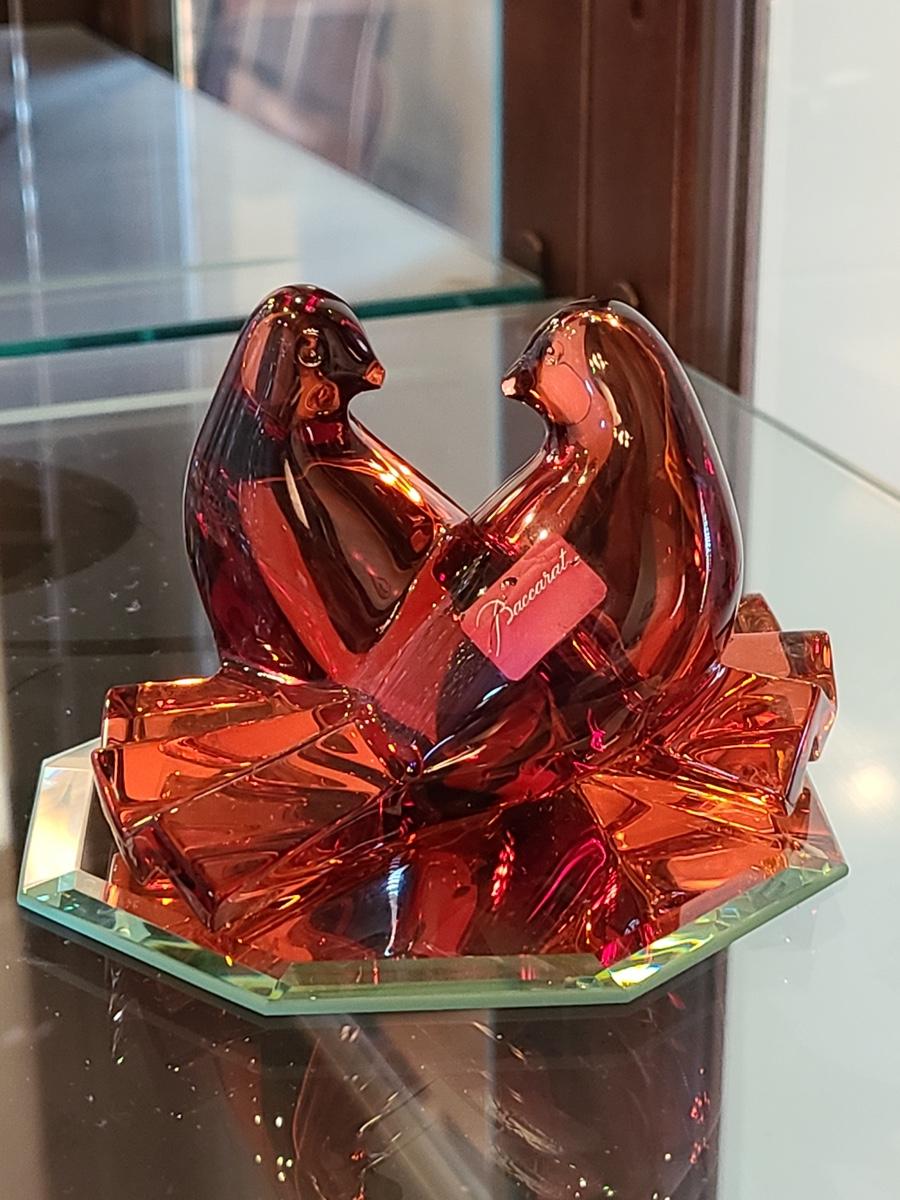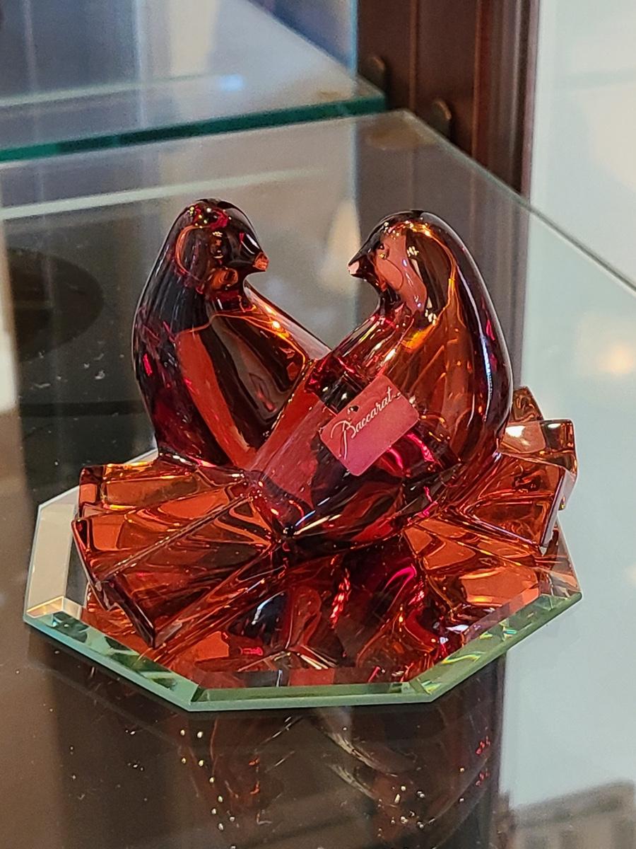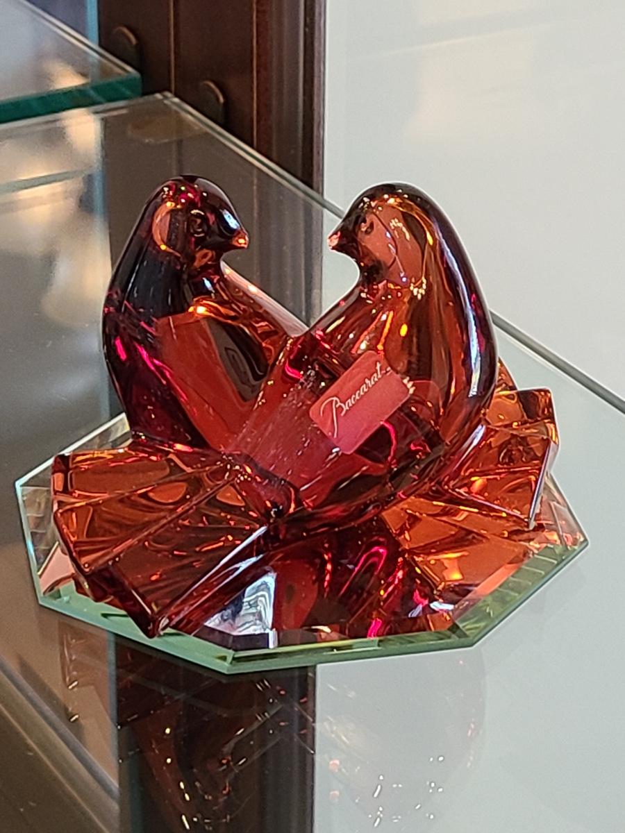 Lot 144: Baccarat Ruby Red French Crystal Love Doves (Birds) Labeled