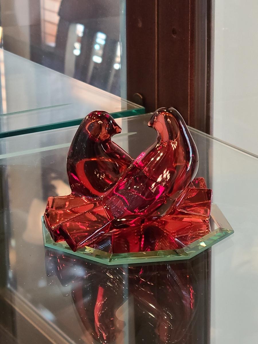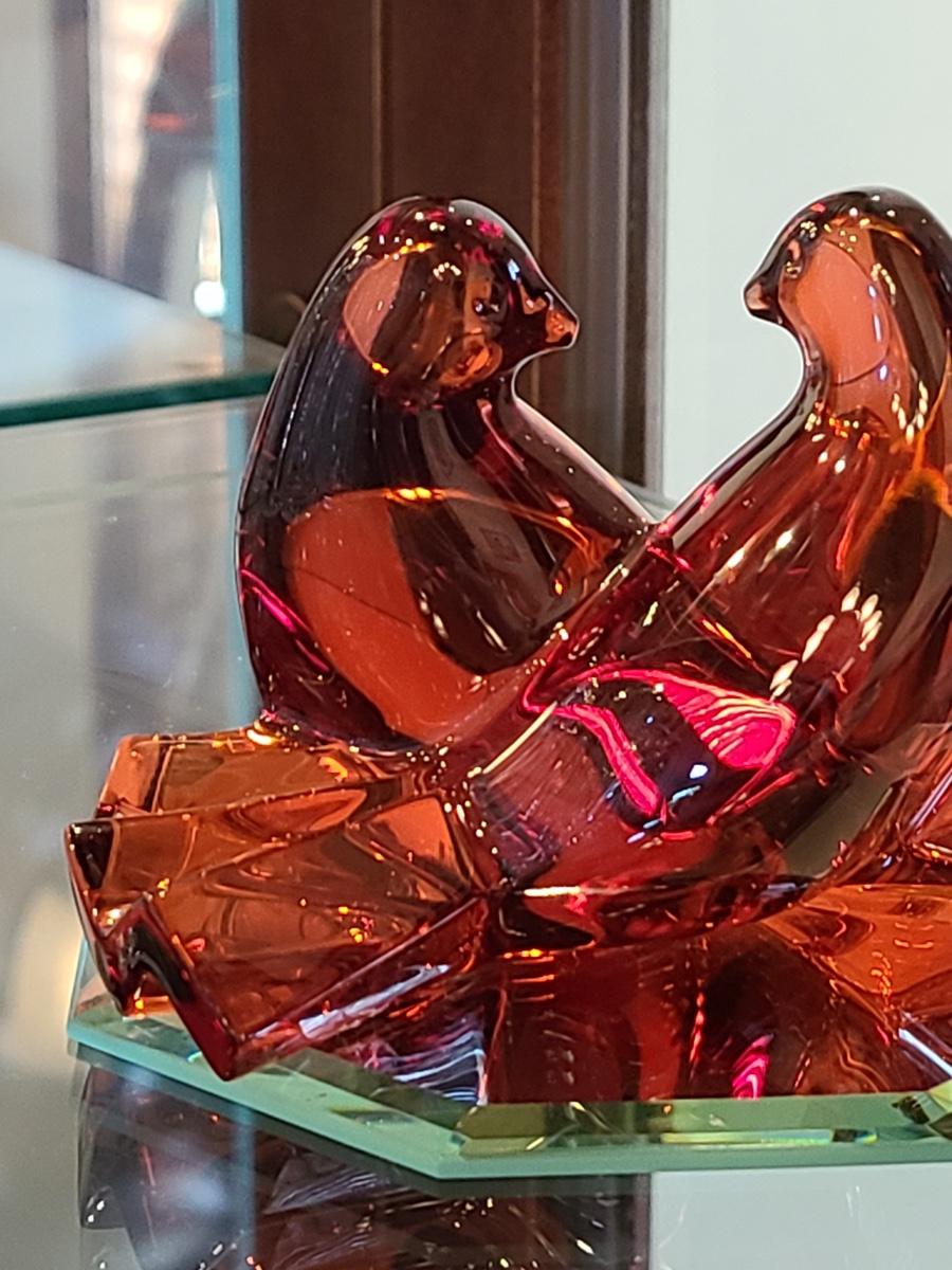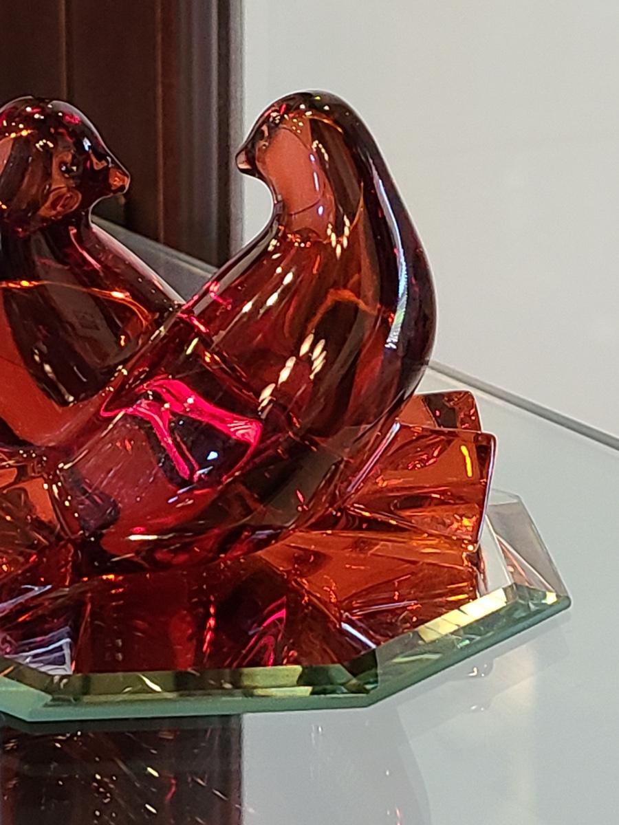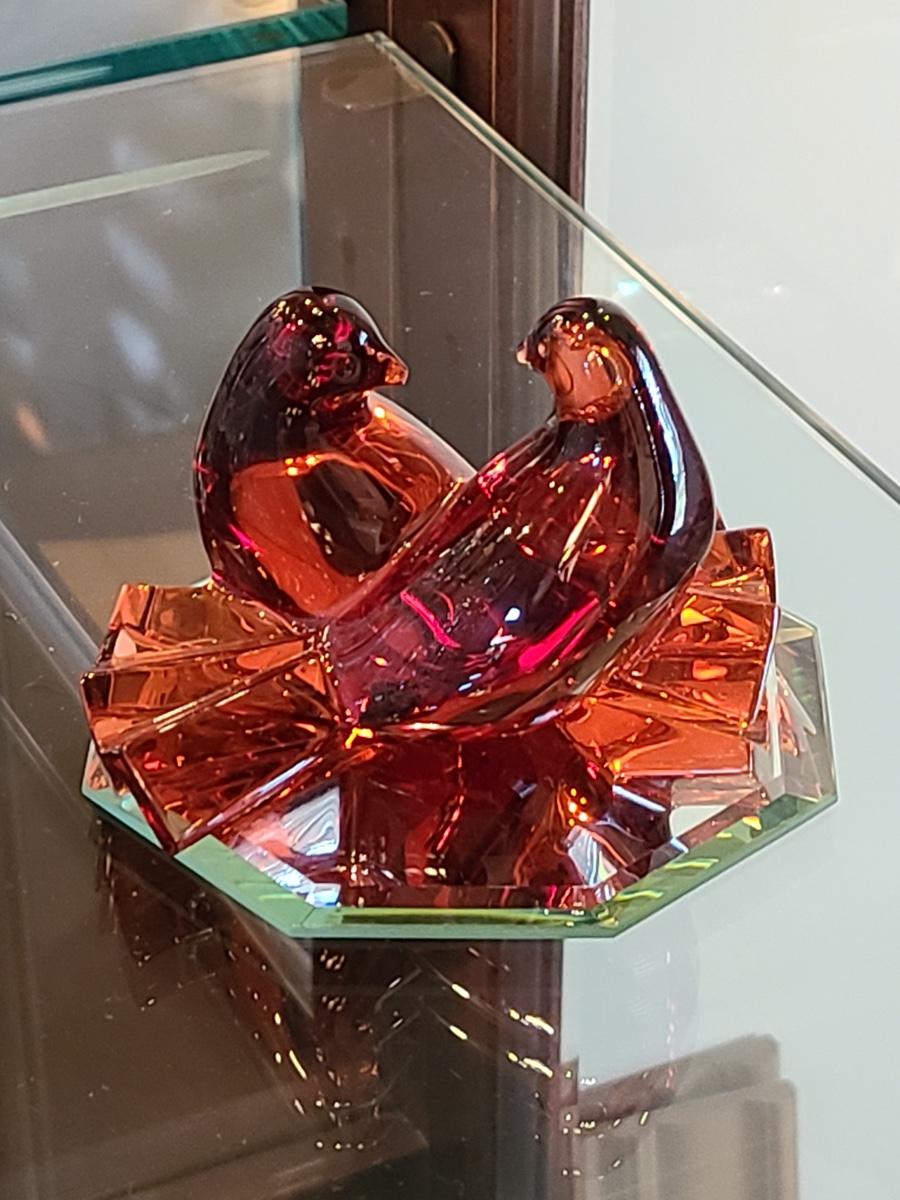 Lot 144: Baccarat Ruby Red French Crystal Love Doves (Birds) Labeled