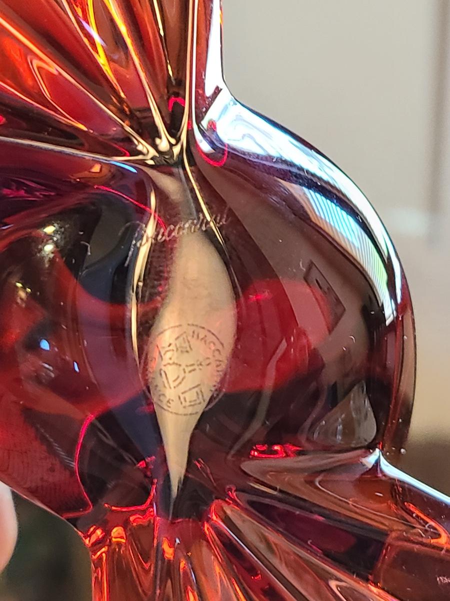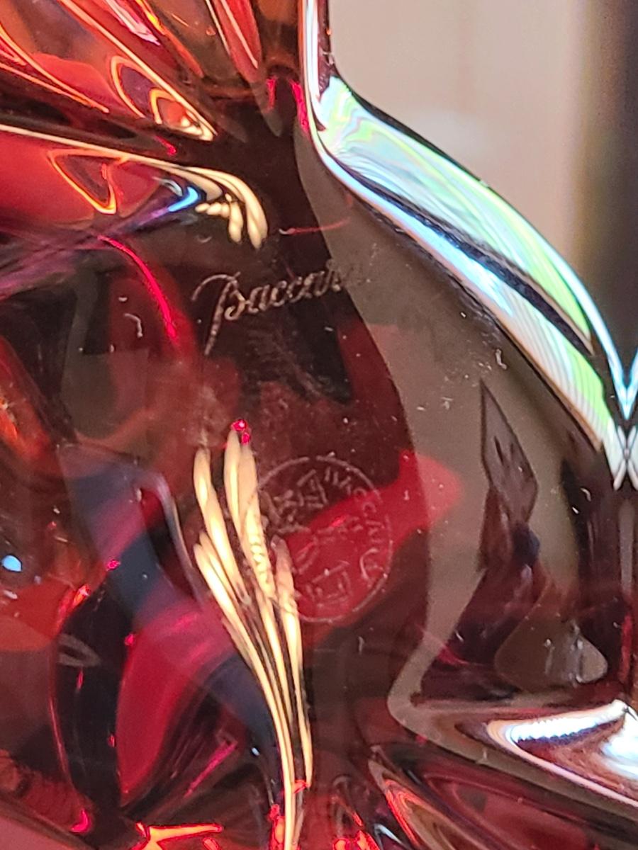This beautiful piece of crystal is one of the harder pieces to find. Vibrant Ruby red, with entwined facing doves. This sits on a mirrored glass. No imperfections to the glass, but the client put pads on the base for safety and the pads have been removed, so a light cleaning of stick residue might be needed. Labelled. Please see all pictures as they are the best representation of the items. The pictures show condition, measurements if taken, and what is included in the lot. Due to the large amount that we photograph and the time frame, we are not always able to take measurements. All items unless noted, are pre-owned and have been used. If you purchased furniture, you must bring help. We do not allow one person to carry large furniture out on their own. Bring help, tools and a truck for the safety of our clients homes, and your personal safety. Company policy. Thank you.