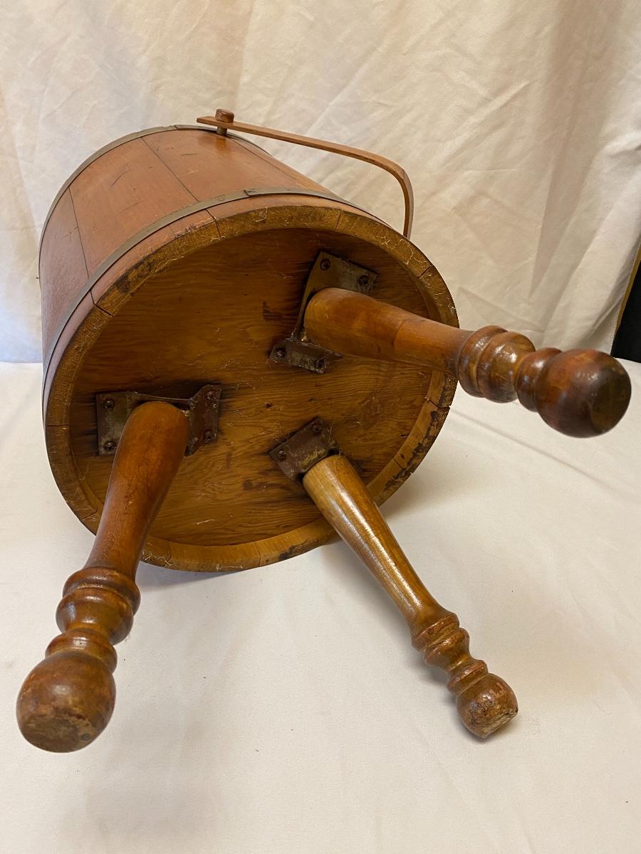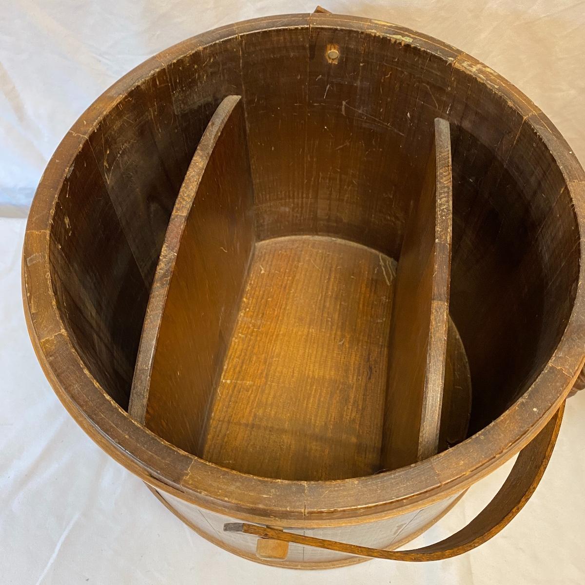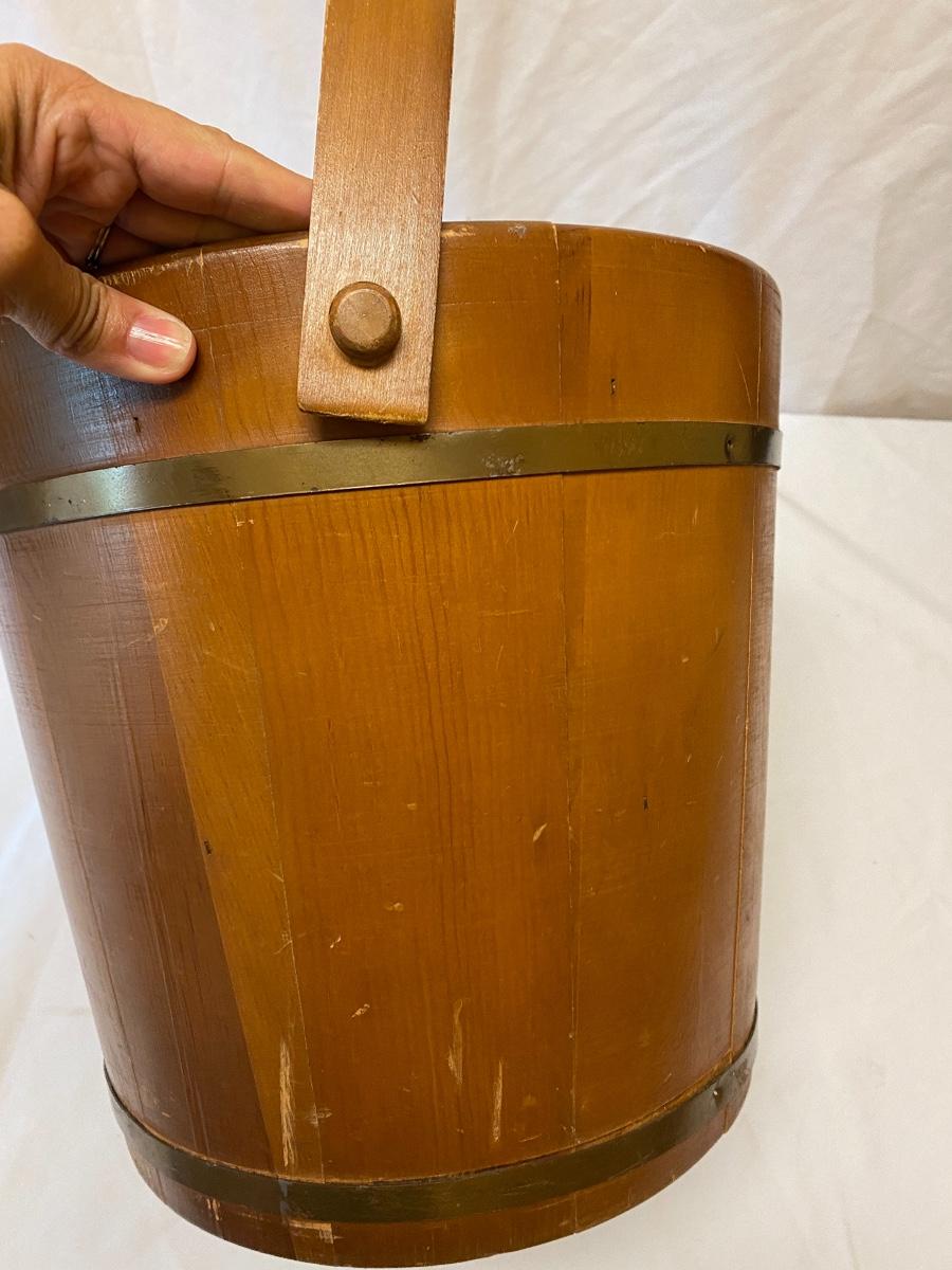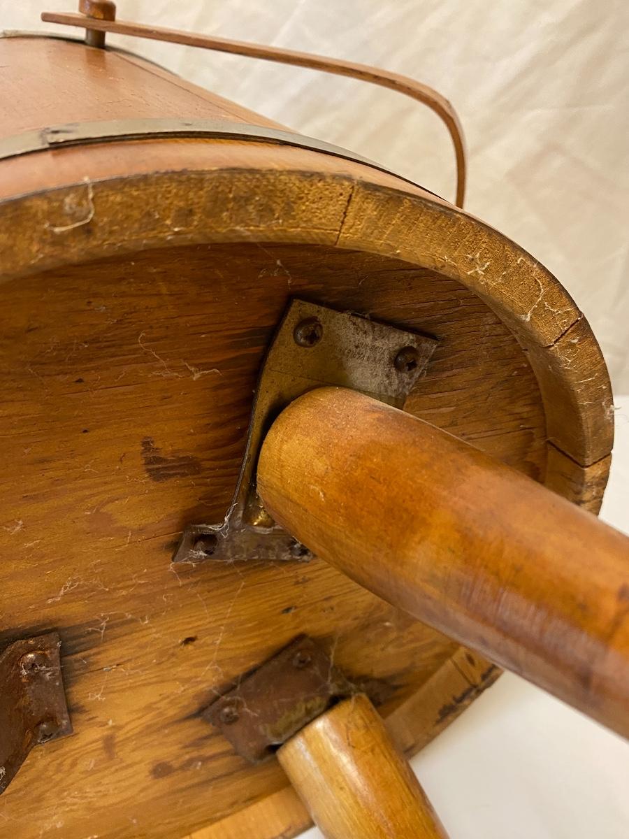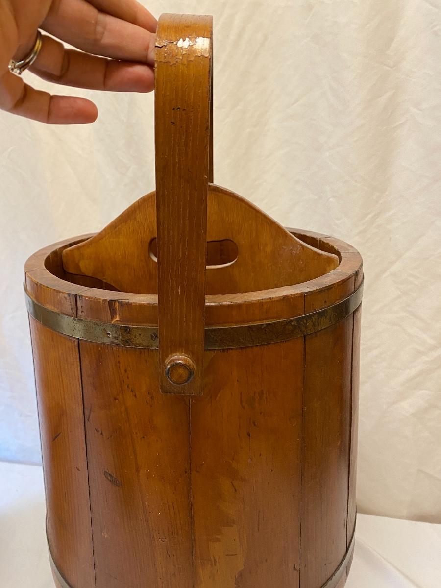 Amplify your country decor with these wooden barrels turned into magazine racks! There are three barrels with dividers inside to add or tidy books, papers or magazines. This lot also includes a good old fashioned magazine rack. The largest barrel measures 17”d x 13.5” tall. Bucket/barrel on legs measures approximately 12” diameter by 23”tall. Local pick up only.